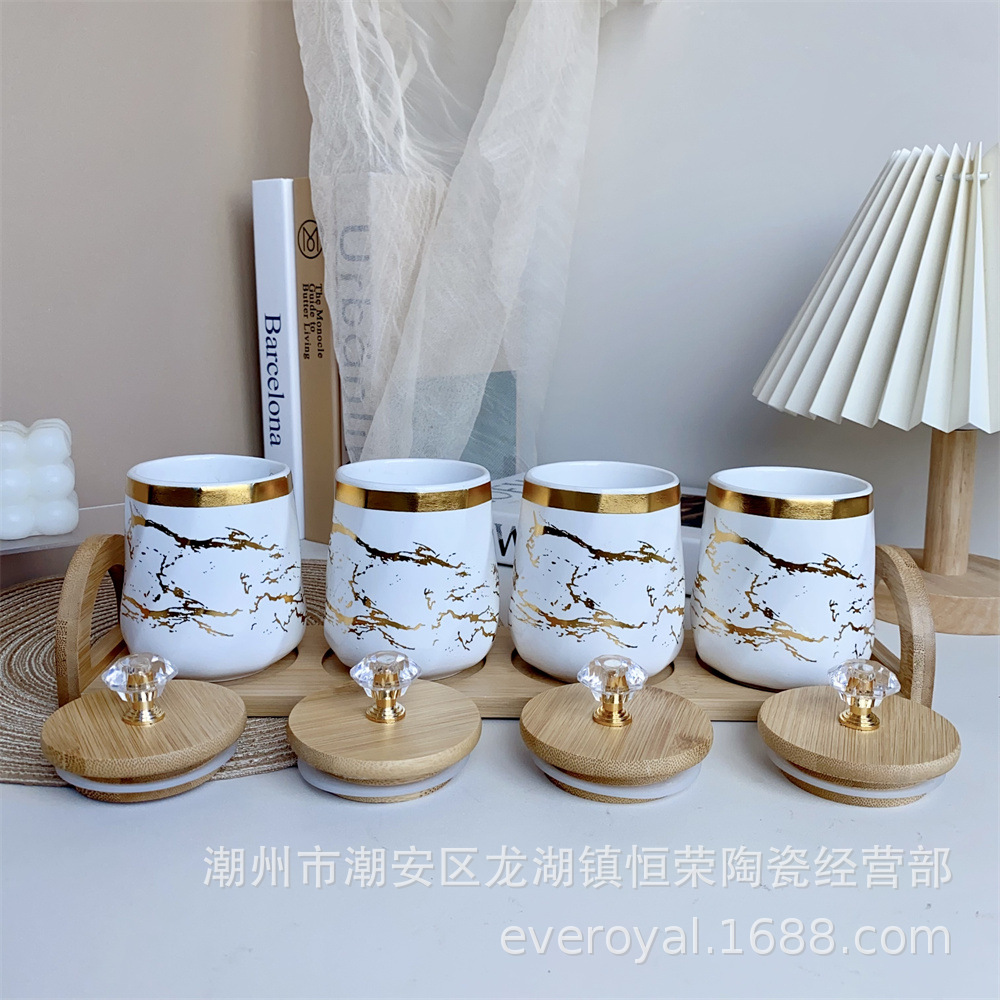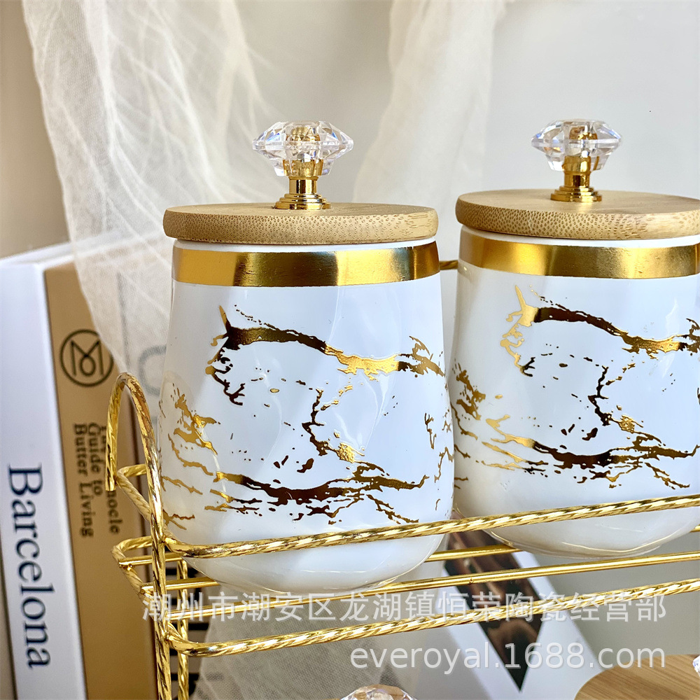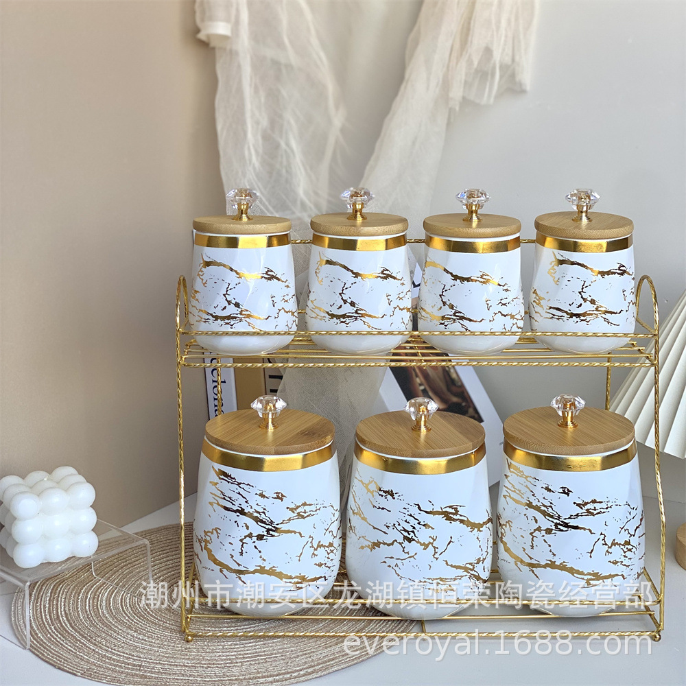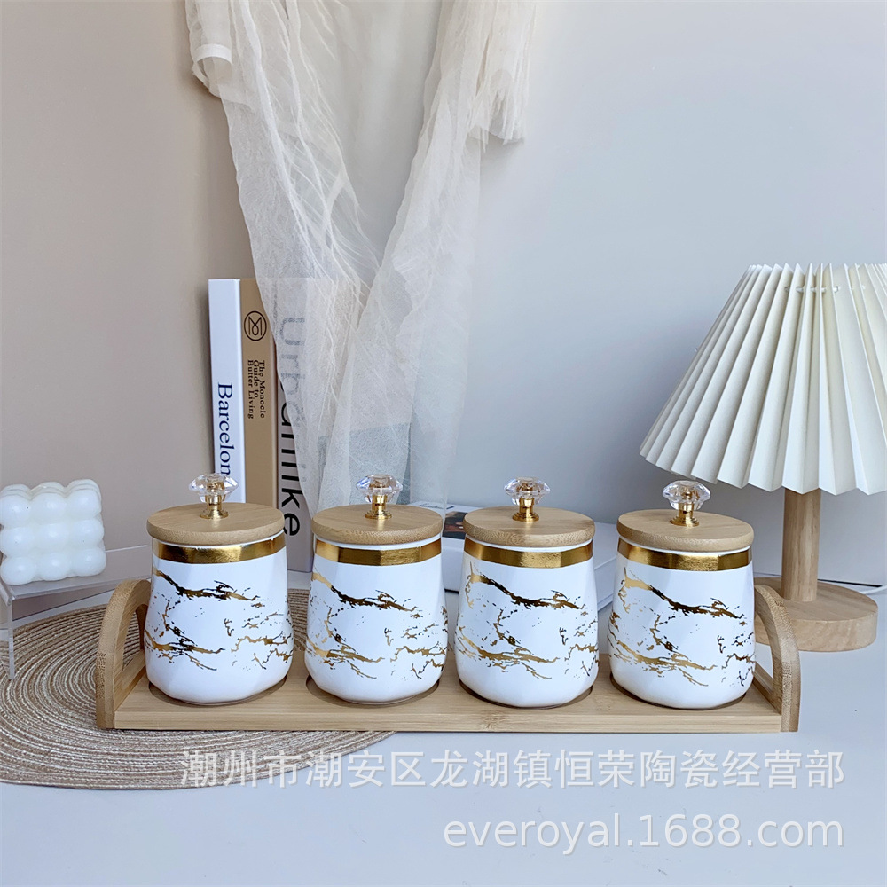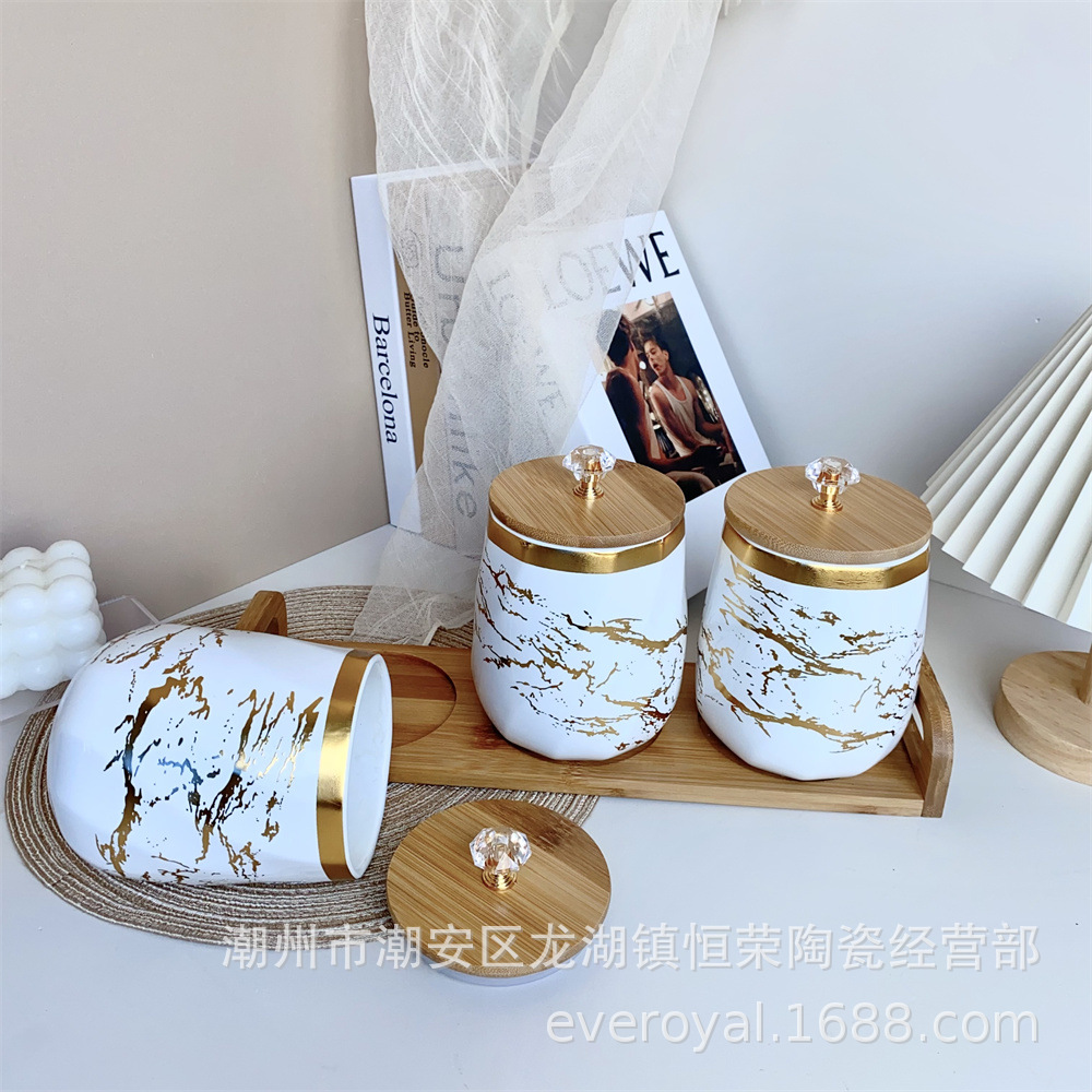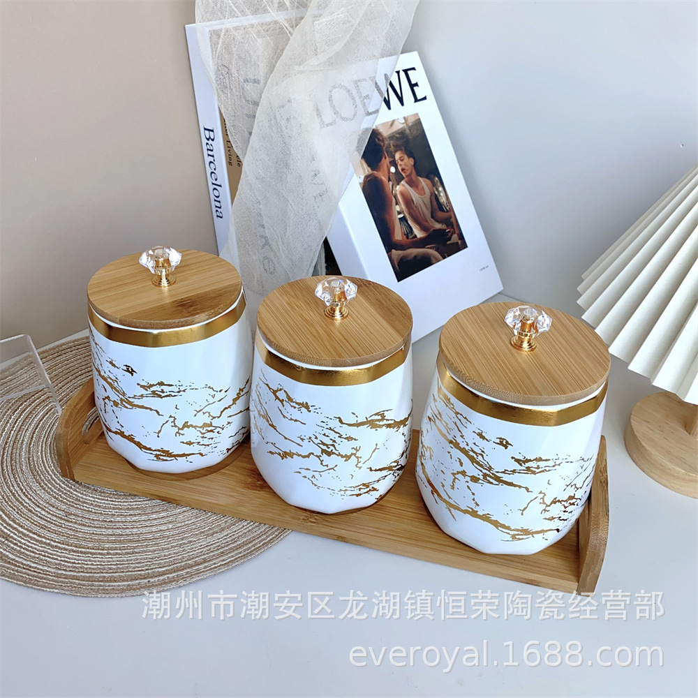 Fábrica de suministro al por mayor condimento de cocina nórdica sellado latas de almacenamiento doméstico conjunto de almacenamiento de cristal de lujo fino