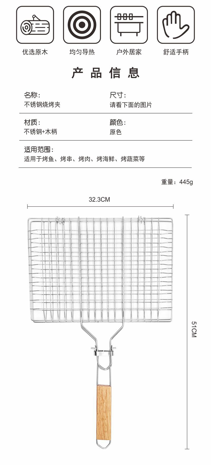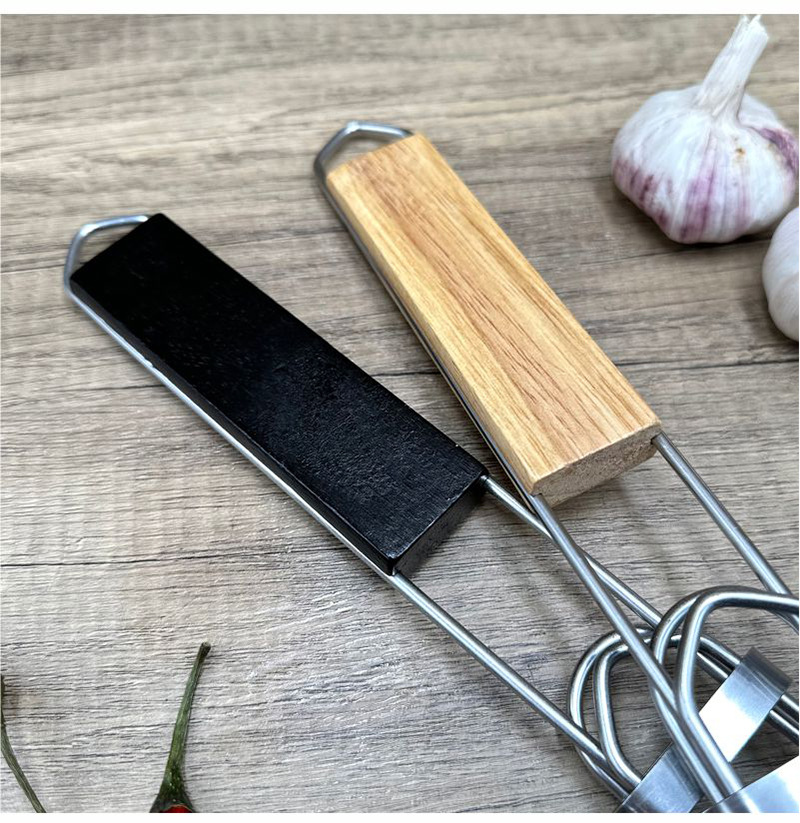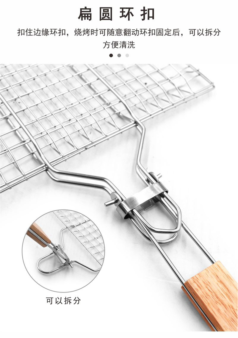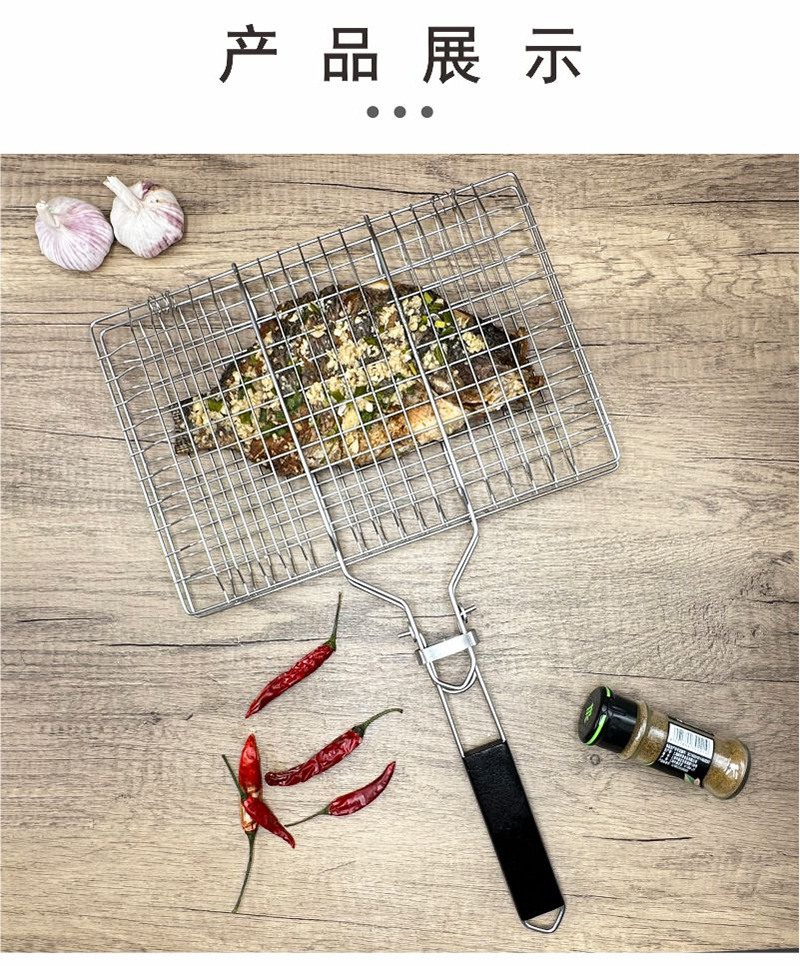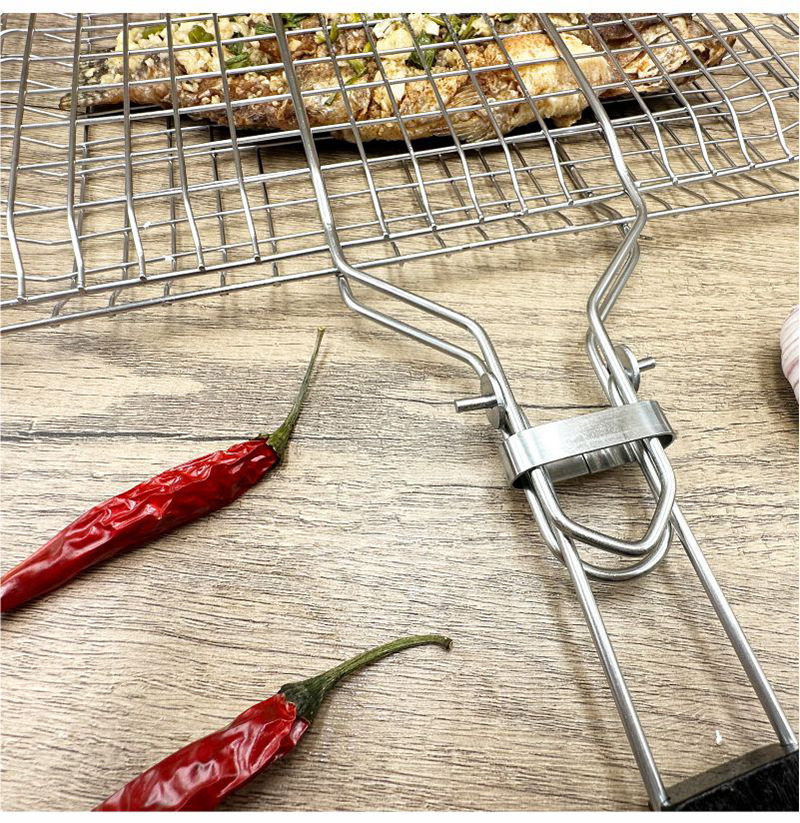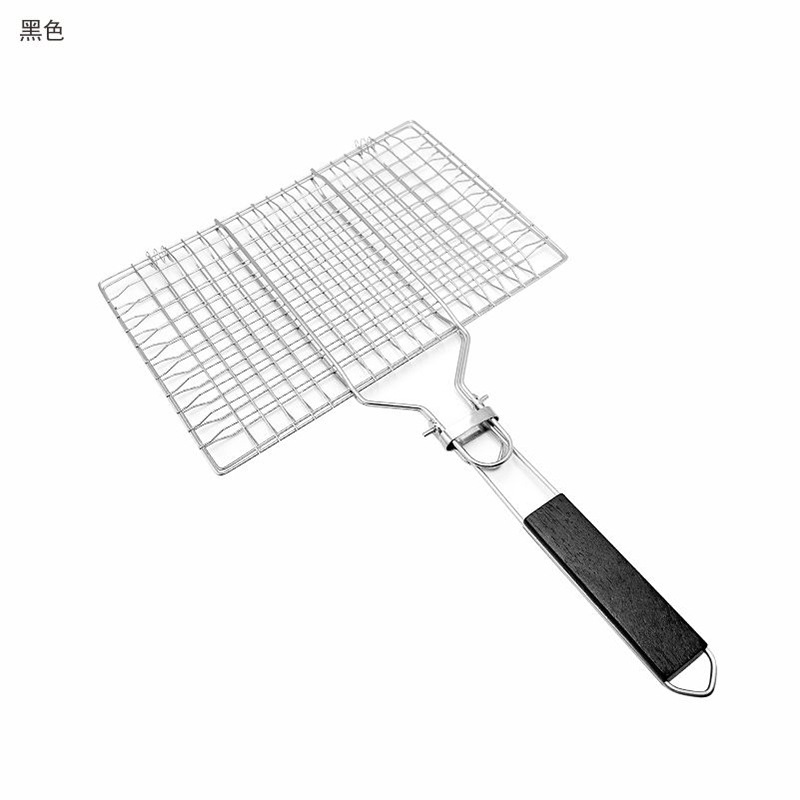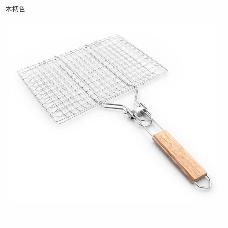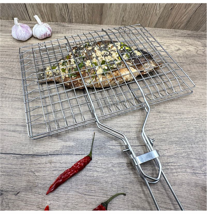 Barbacoa de acero inoxidable BBQ transfronteriza, mango plegable para exteriores, rejilla para hornear, rejilla para barbacoa, rejilla para pescado a la parrilla cuadrada, clip para salchicha