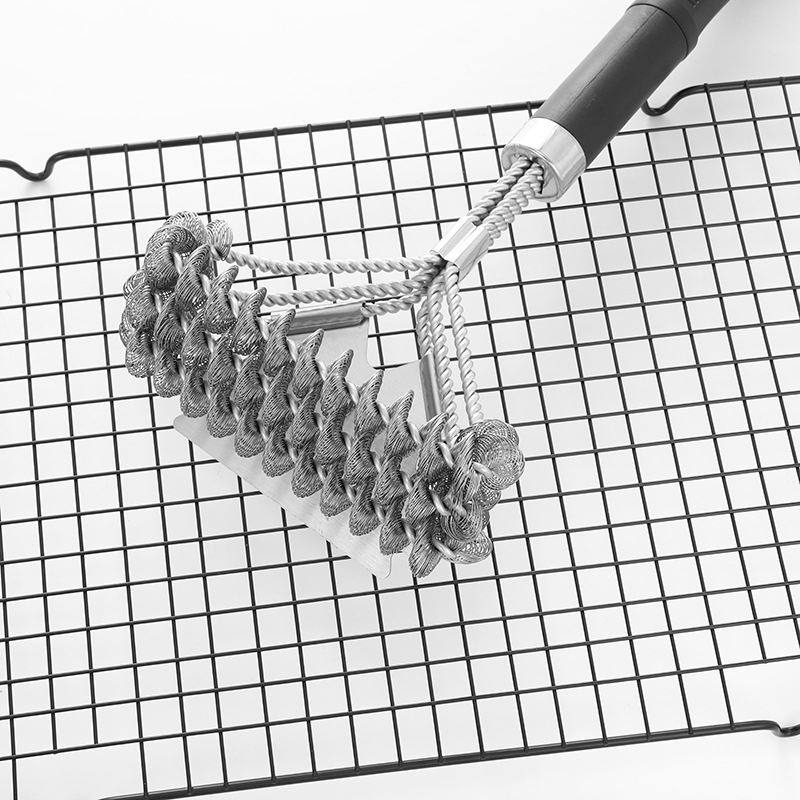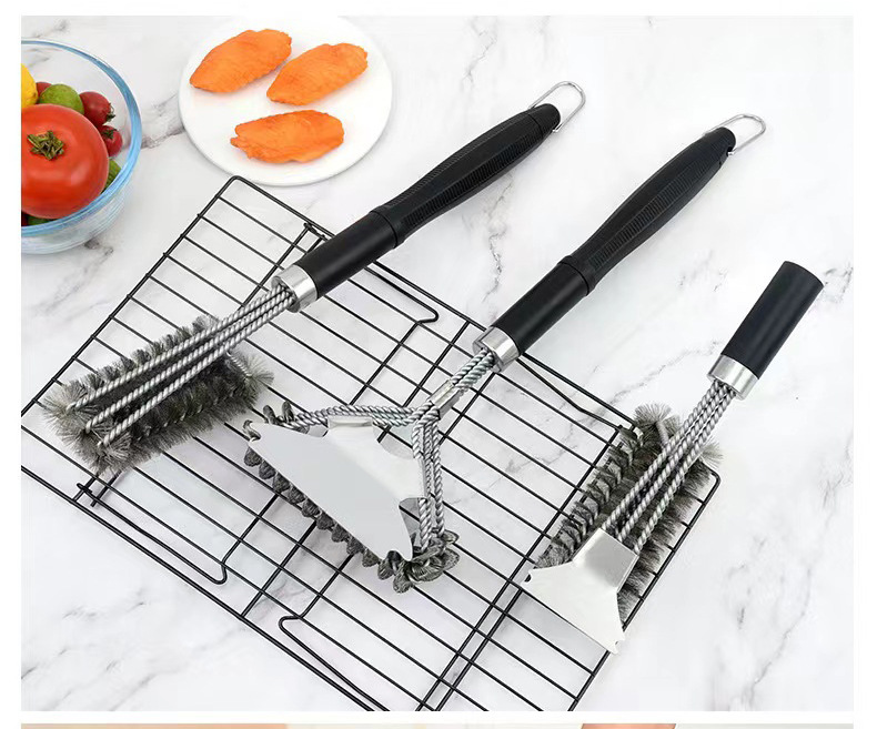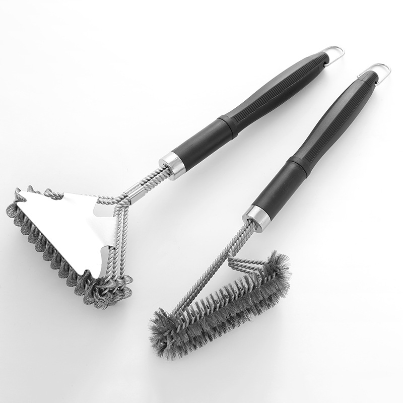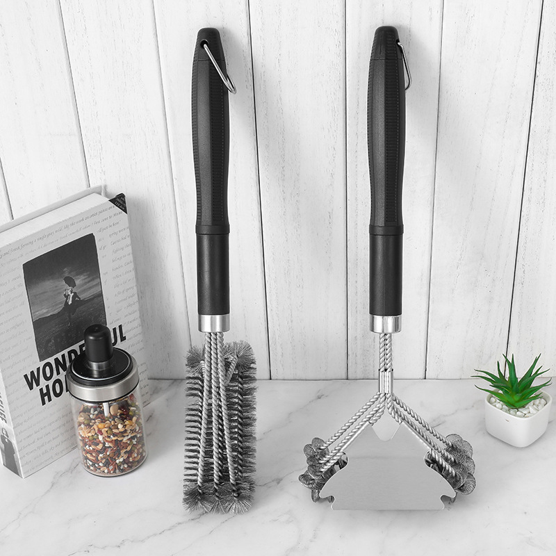 Cepillo de limpieza de barbacoa de acero inoxidable de Amazon Cepillo de limpieza de horno de alambre de acero de tres cabezas de 18 pulgadas Cepillo de parrilla de malla de parrilla BBQ