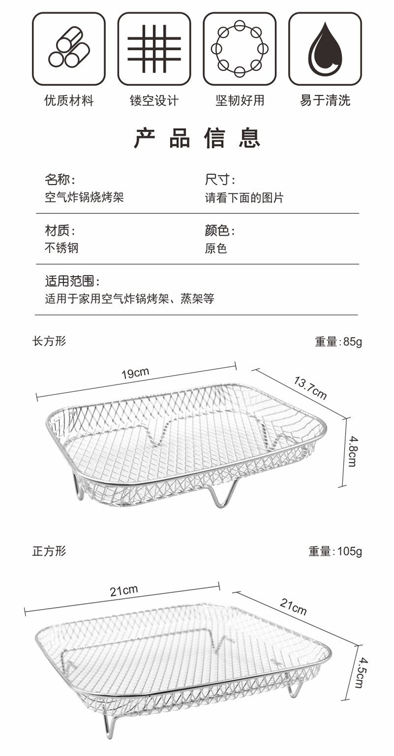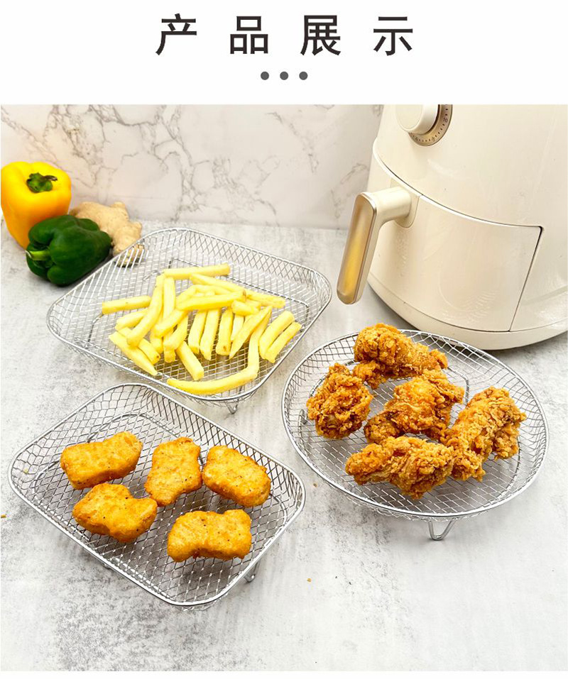 Estante para freidora de aire, parrilla para horno microondas, rejilla para cocinar al vapor de tres capas de acero inoxidable 304, canasta para papas fritas, rejilla para aceite, rejilla para barbacoa