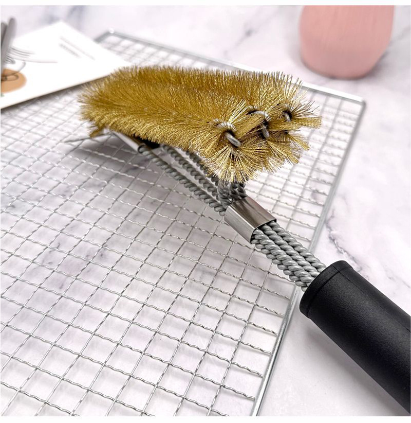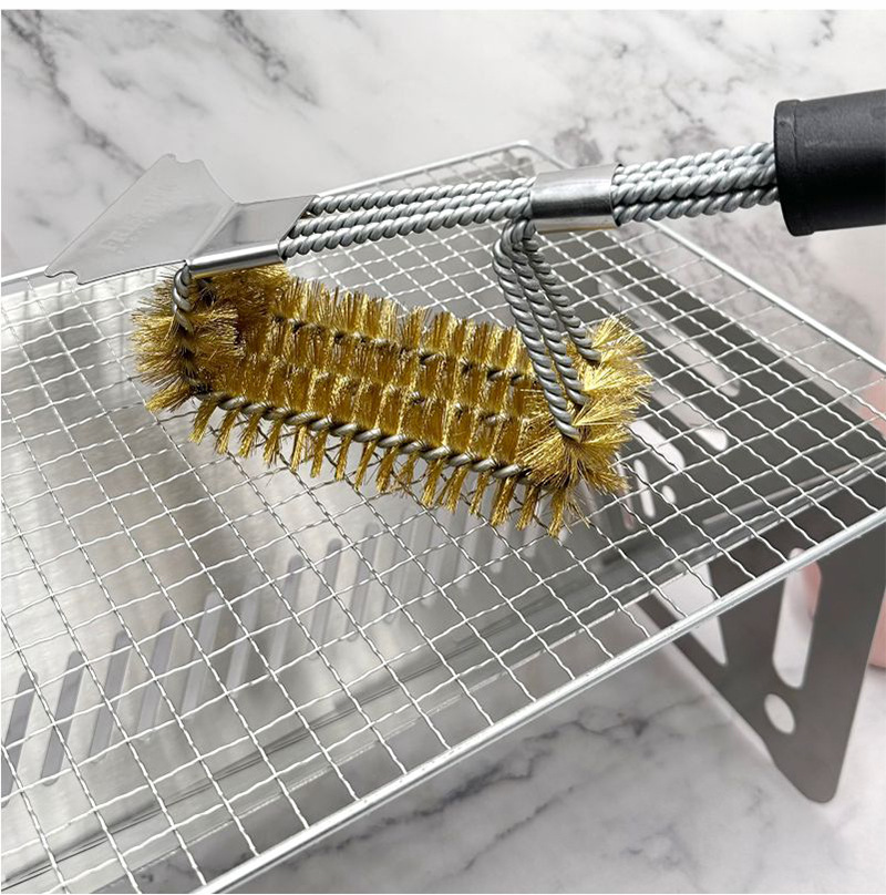 Cepillo de limpieza para barbacoa de tres cabezas de 18 pulgadas, cepillo de alambre para parrilla, cepillo de tres capas, cepillo de limpieza para parrilla al aire libre