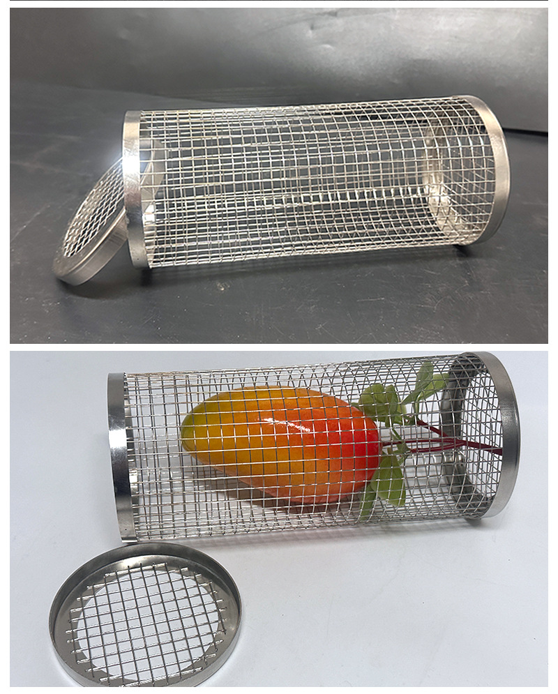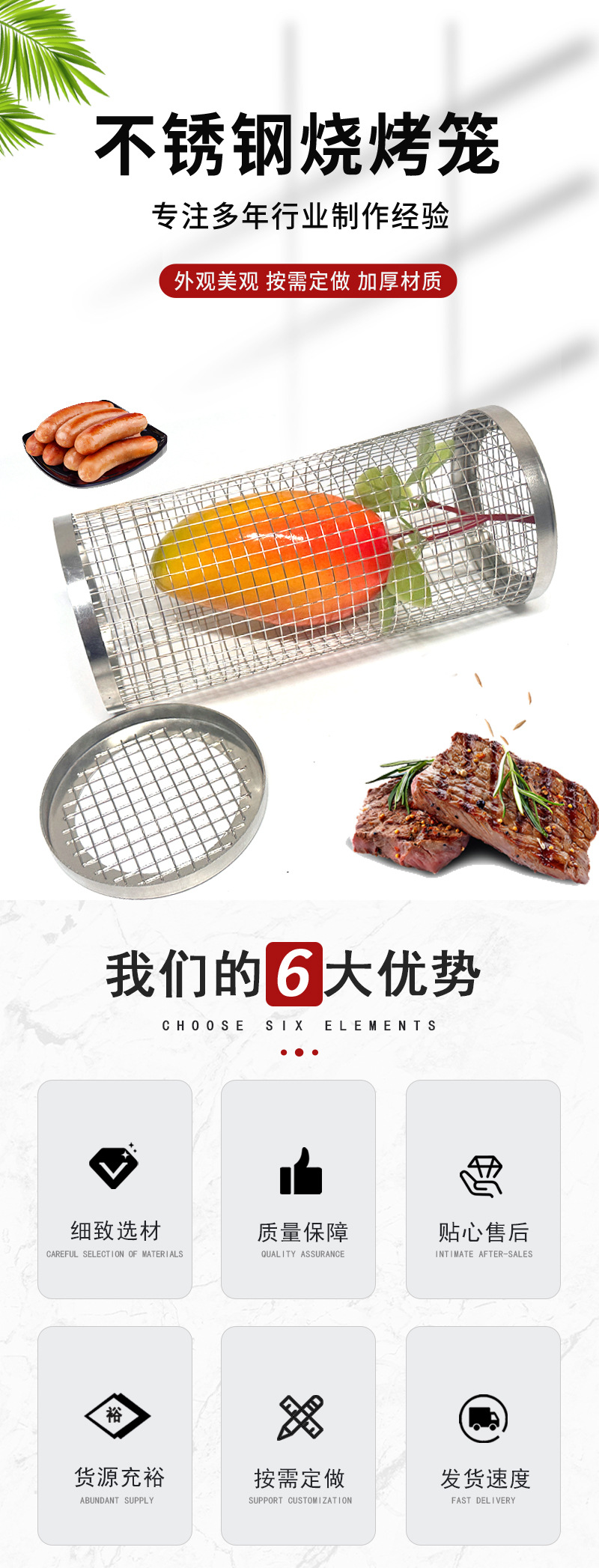 Acero inoxidable barbacoa jaula redonda tubo de Red auxiliar herramienta suministros al aire libre portátil camping picnic