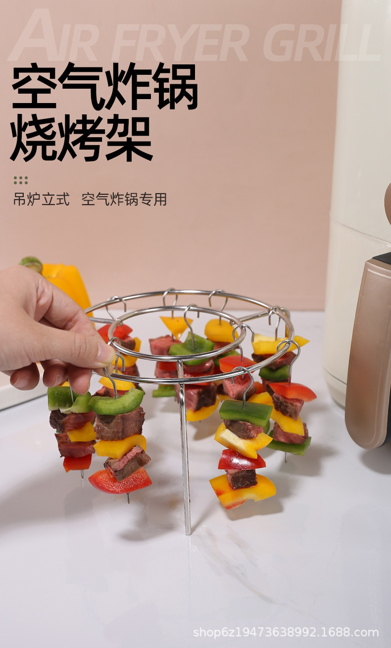 Freidora de aire, colgante vertical, bolsa de barbacoa, accesorios de brochetas de cordero, horno de herramientas de aguja de barbacoa de acero inoxidable de grado alimenticio