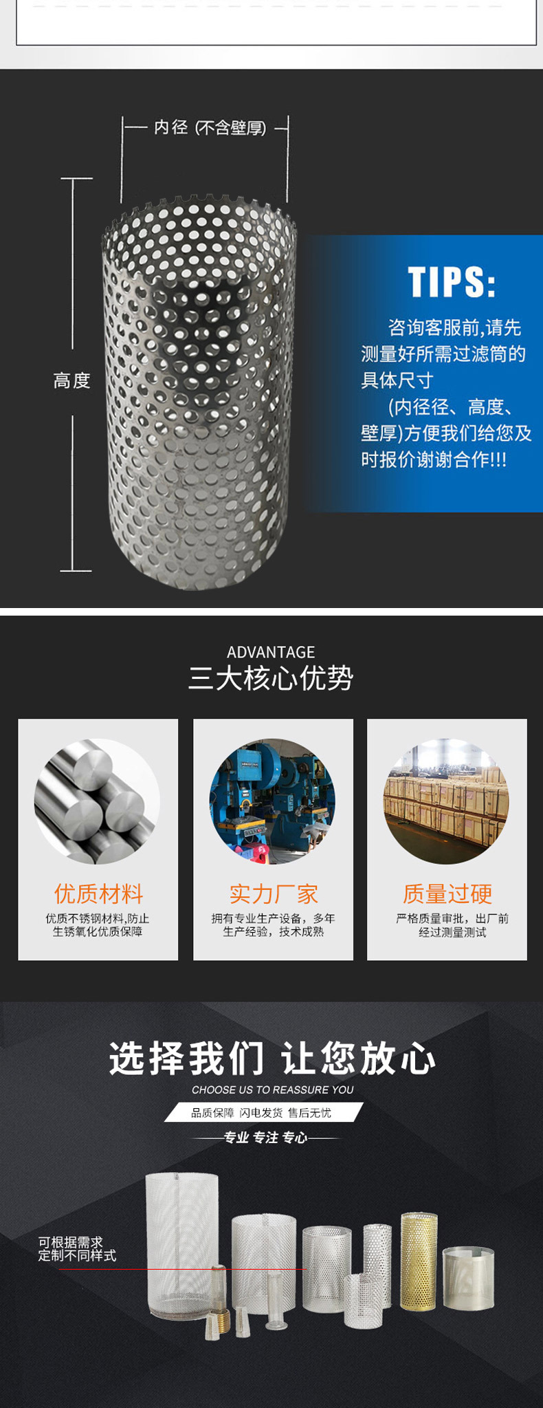 Cilindro de cartucho de filtro de alcantarillado de tubo de elemento filtrante de acero inoxidable de cartucho de filtro cónico