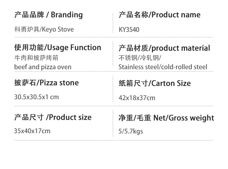| Propiedades | Horno de pizza de acero inoxidable |
