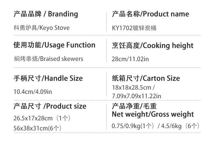 | Especificaciones de la parrilla / plato | Cubo de carbono de barril de fuego de 17 pulgadas [placa galvanizada antioxidante] |