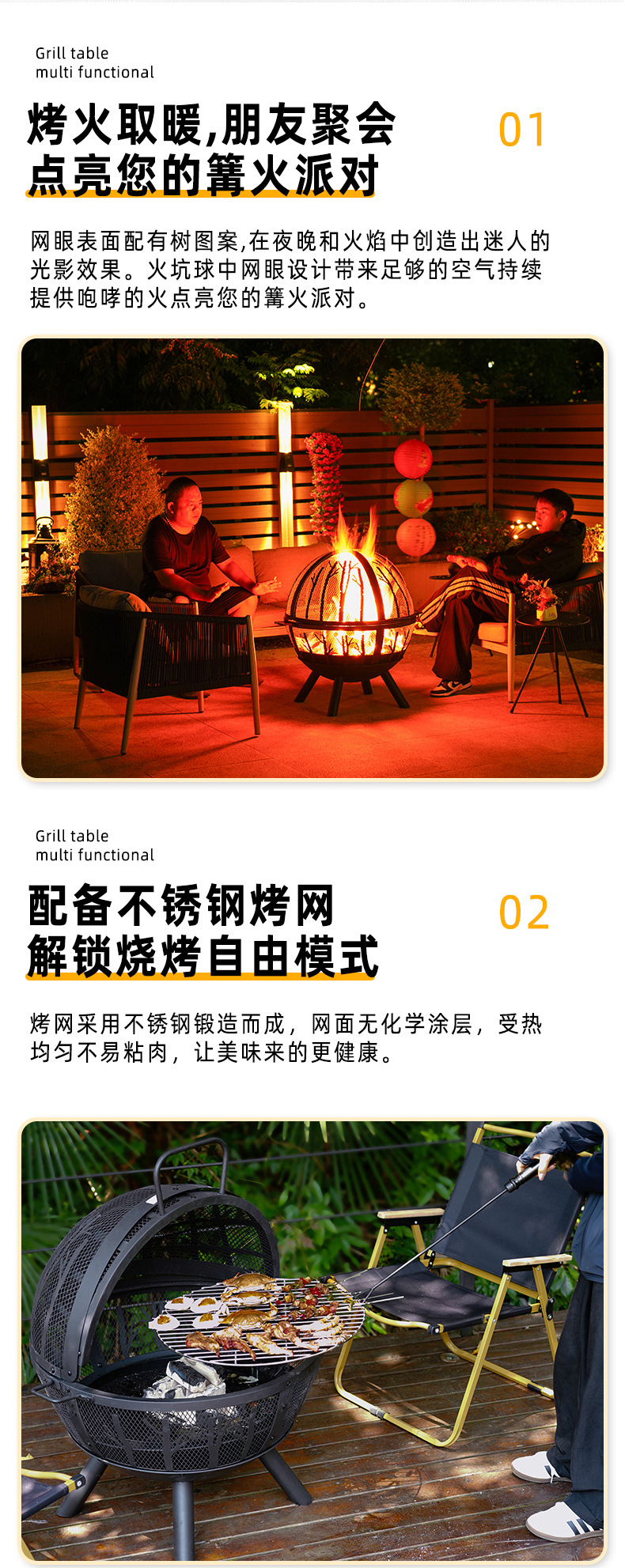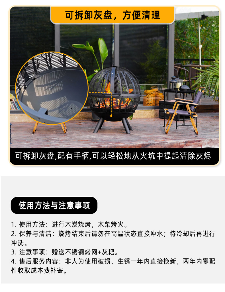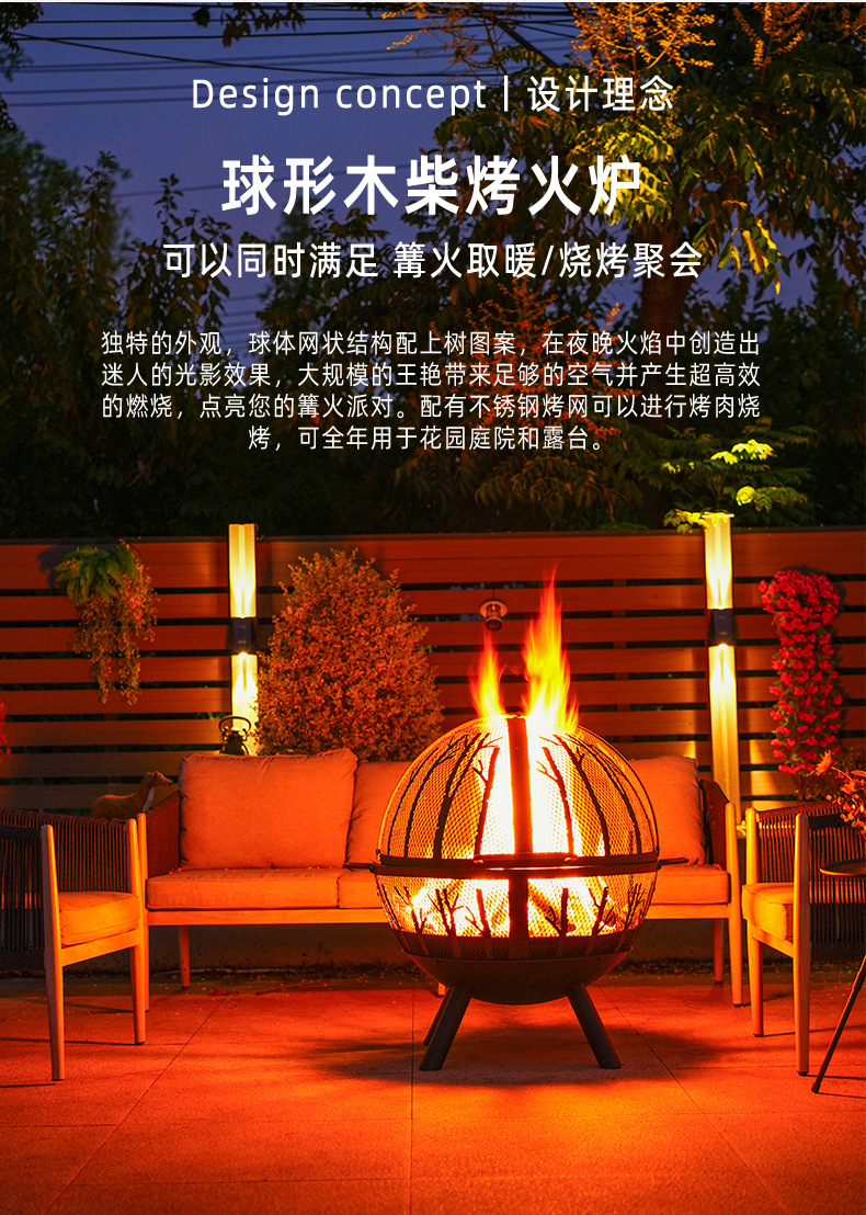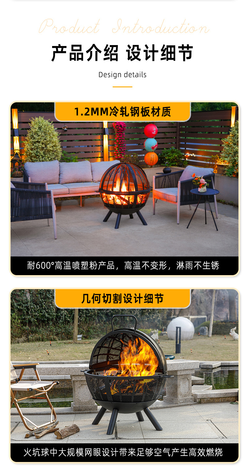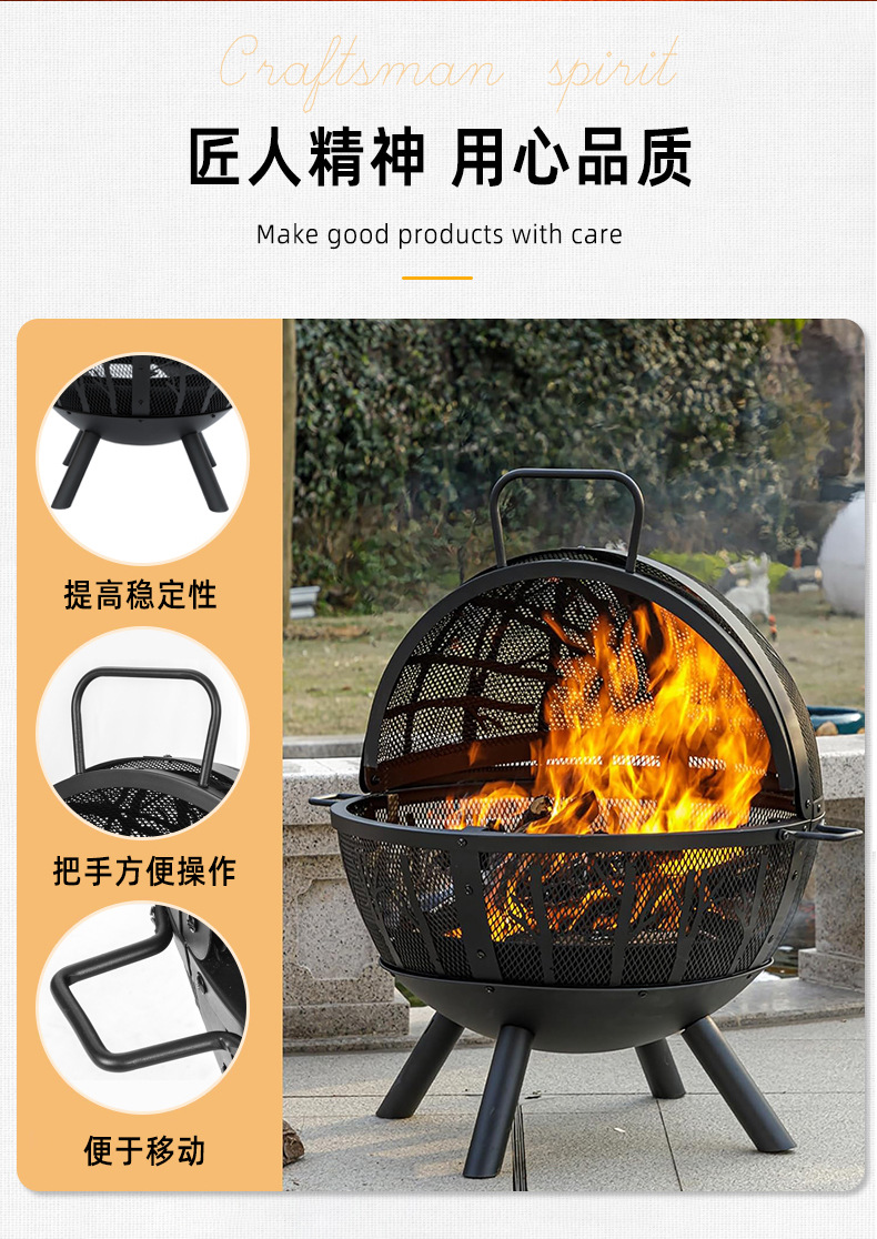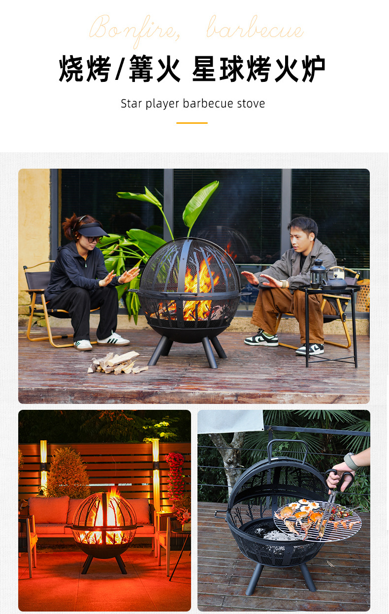 Hoguera artesanal al aire libre horno doméstico patio gran parrilla esférica calentador de camping jardín hoguera