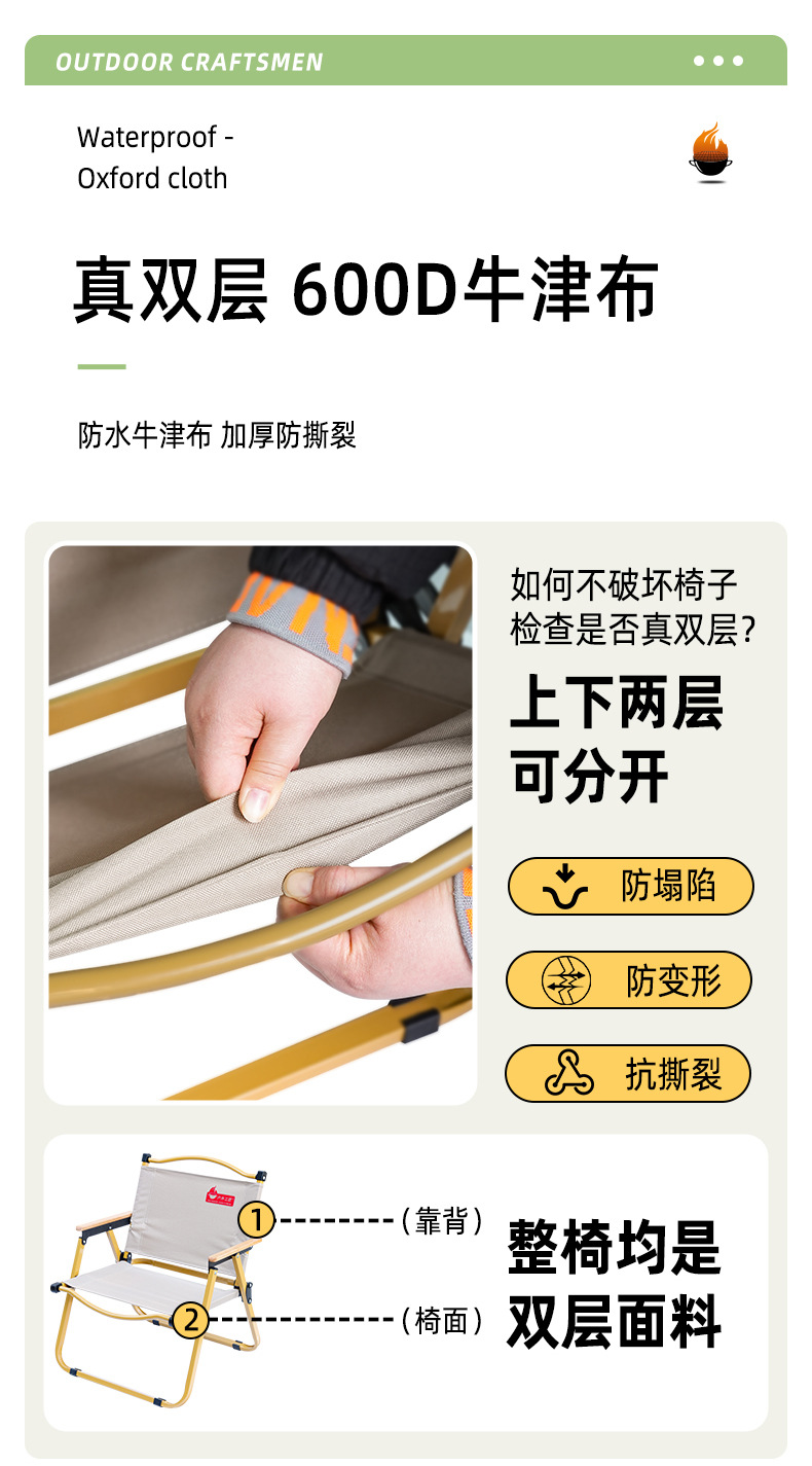 Artesano al aire libre silla Kermit silla plegable camping silla de ocio al aire libre portátil jardín ocio taburete grueso