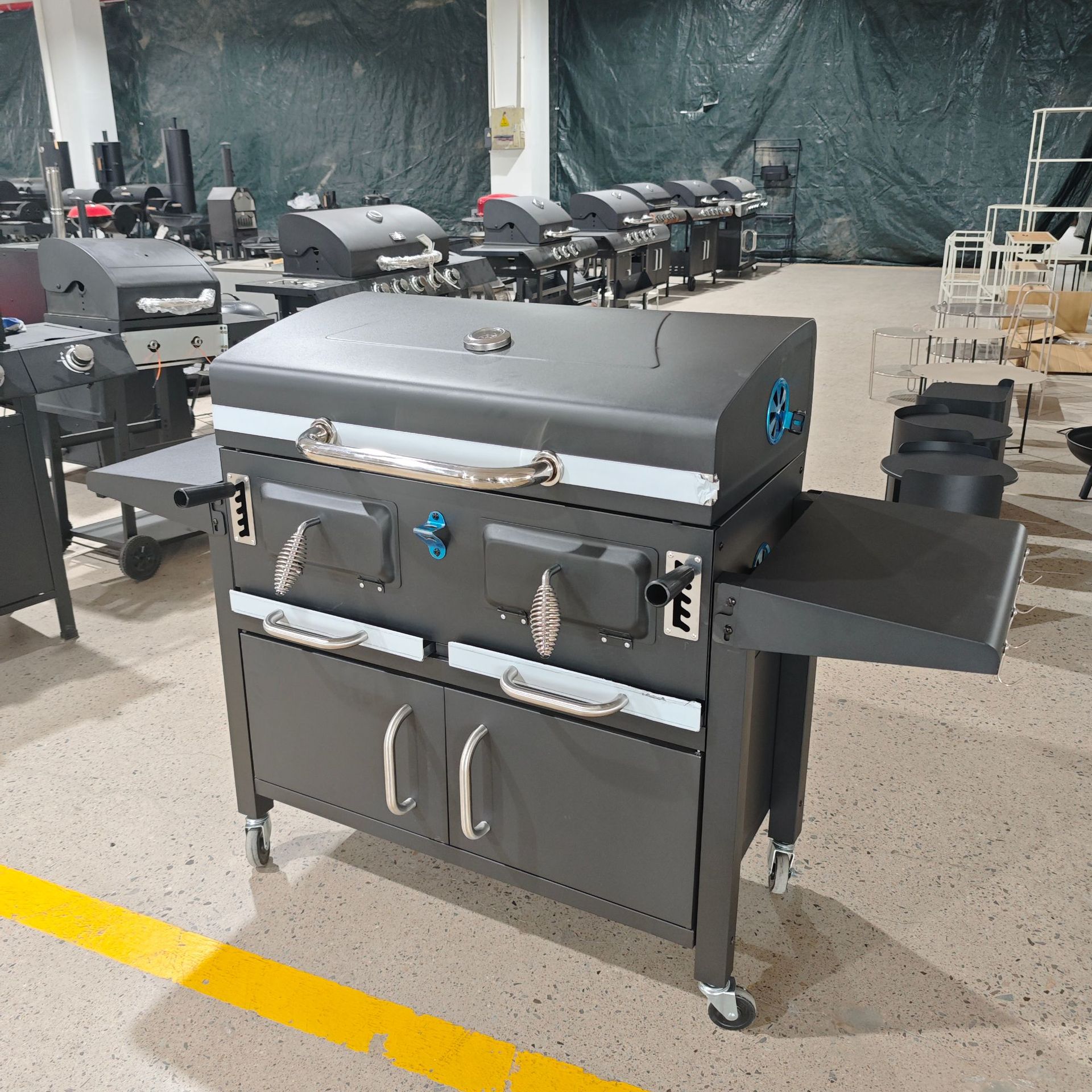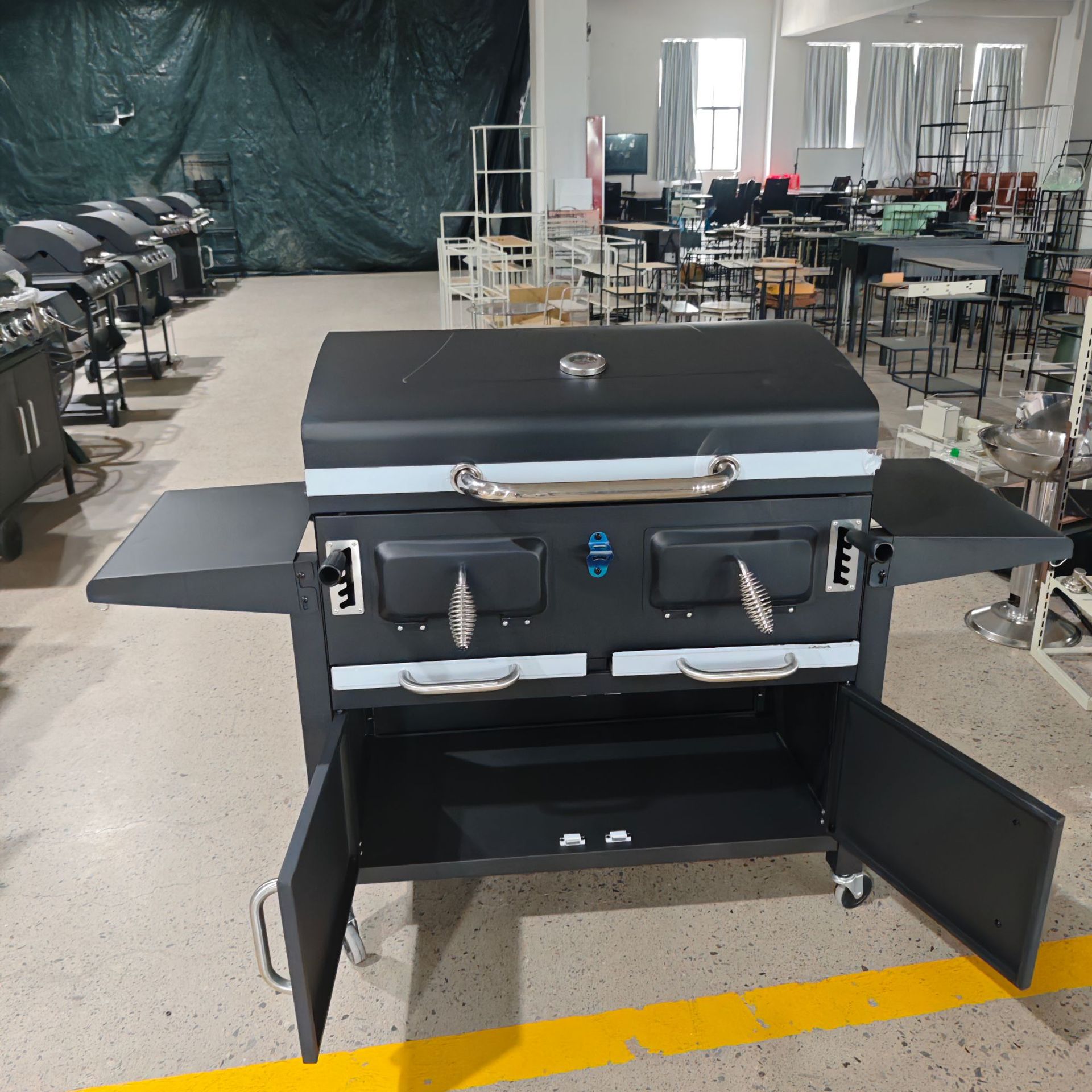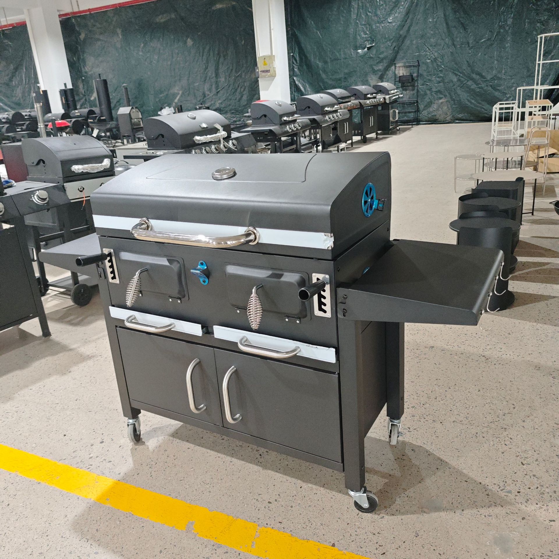 Horno de carbón de campamento estadounidense engrosado transfronterizo, horno de gran capacidad, patio exterior, gran protección del medio ambiente, parrilla cuadrada