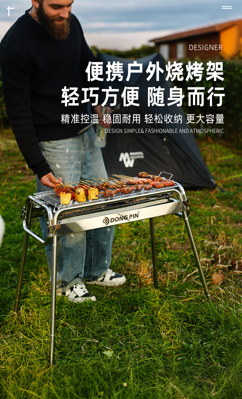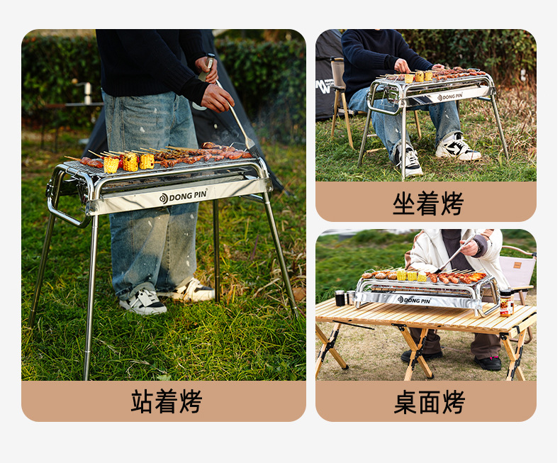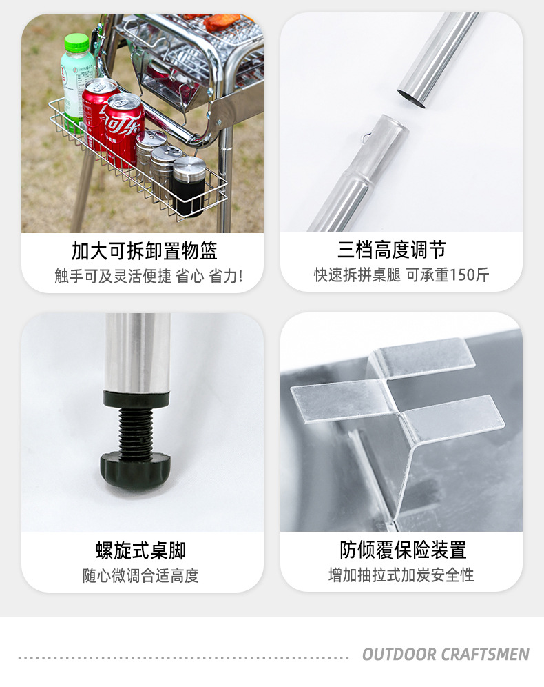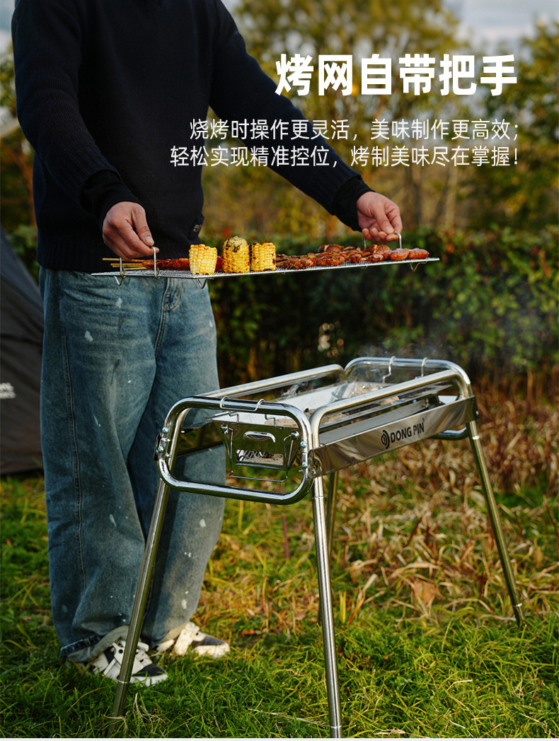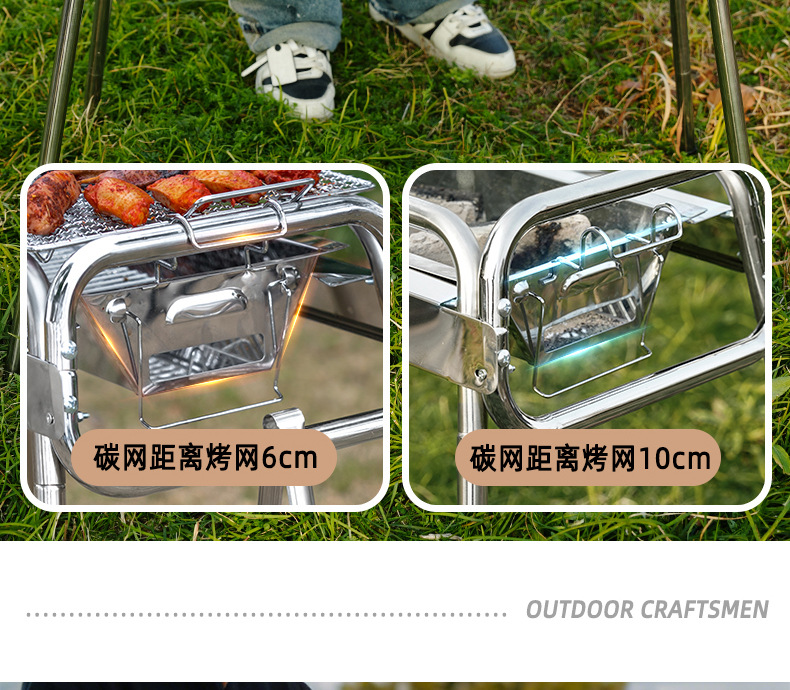 Barbacoa portátil artesano al aire libre parrilla de acero inoxidable parrilla de carbón doméstico plegable rejilla de horno de carbón al aire libre engrosamiento