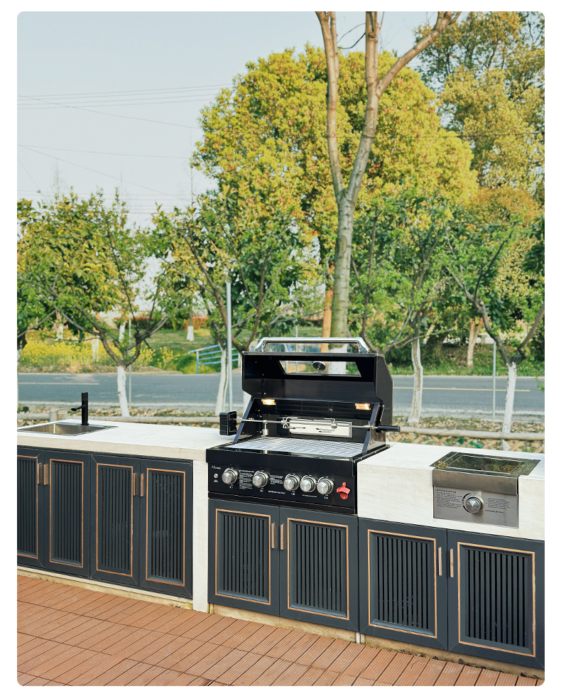 Artesanos al aire libre incrustados horno de barbacoa de carbón de gas patio doméstico jardín mesa de barbacoa 304 cocina de acero inoxidable