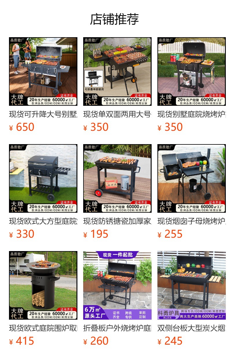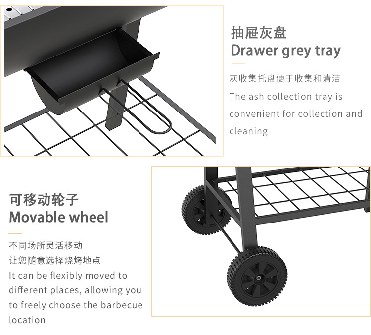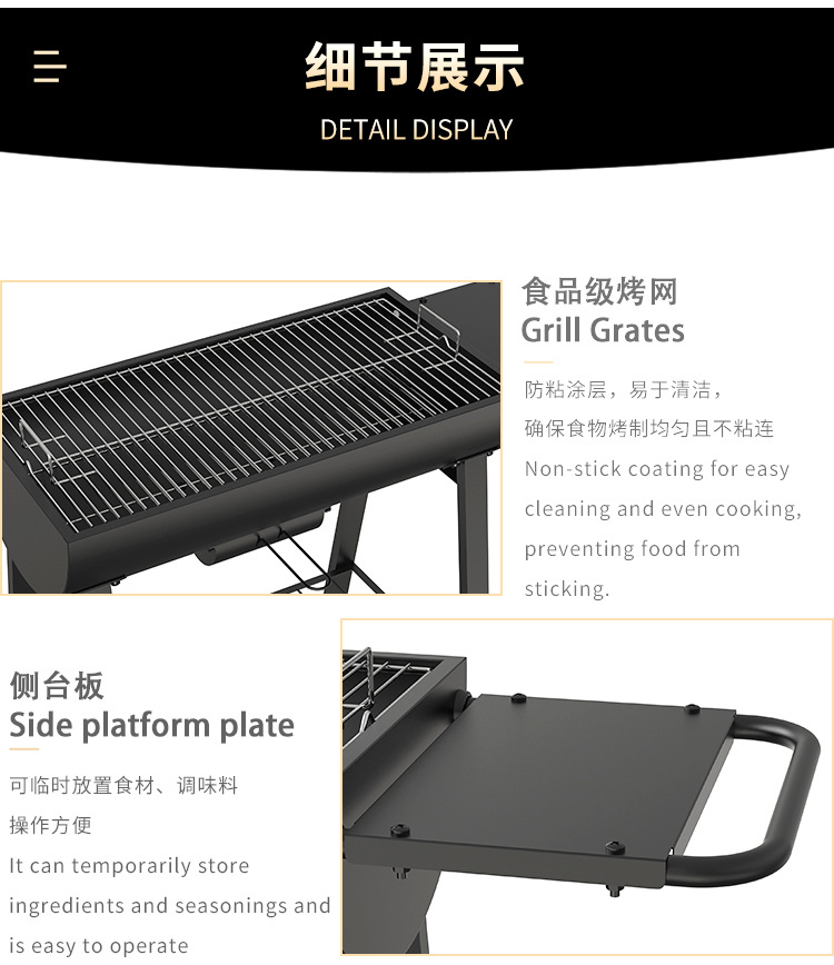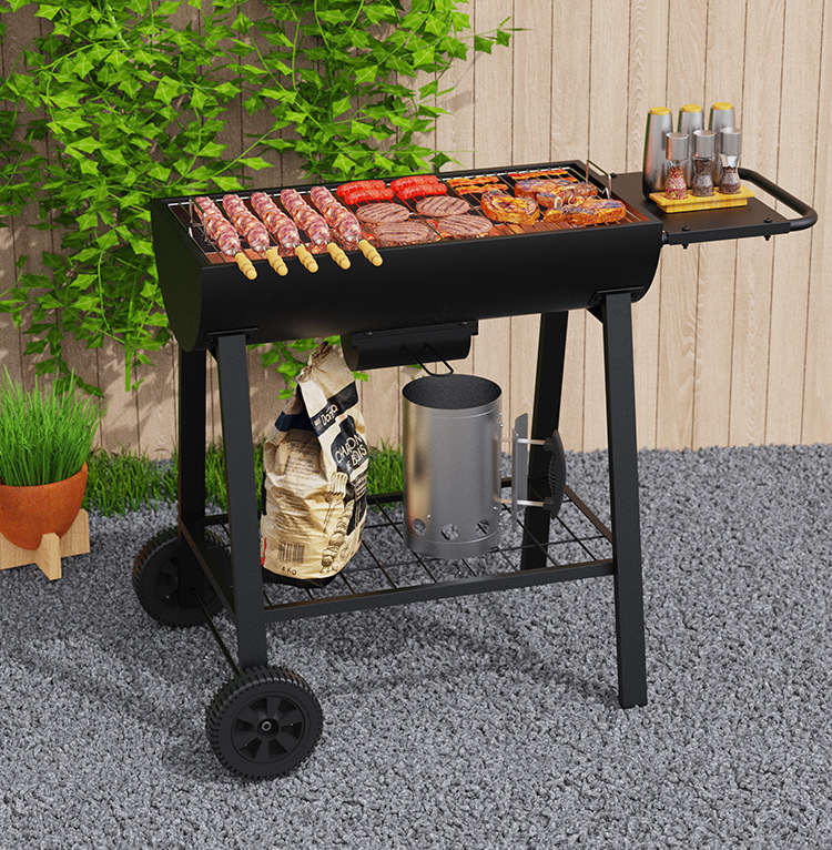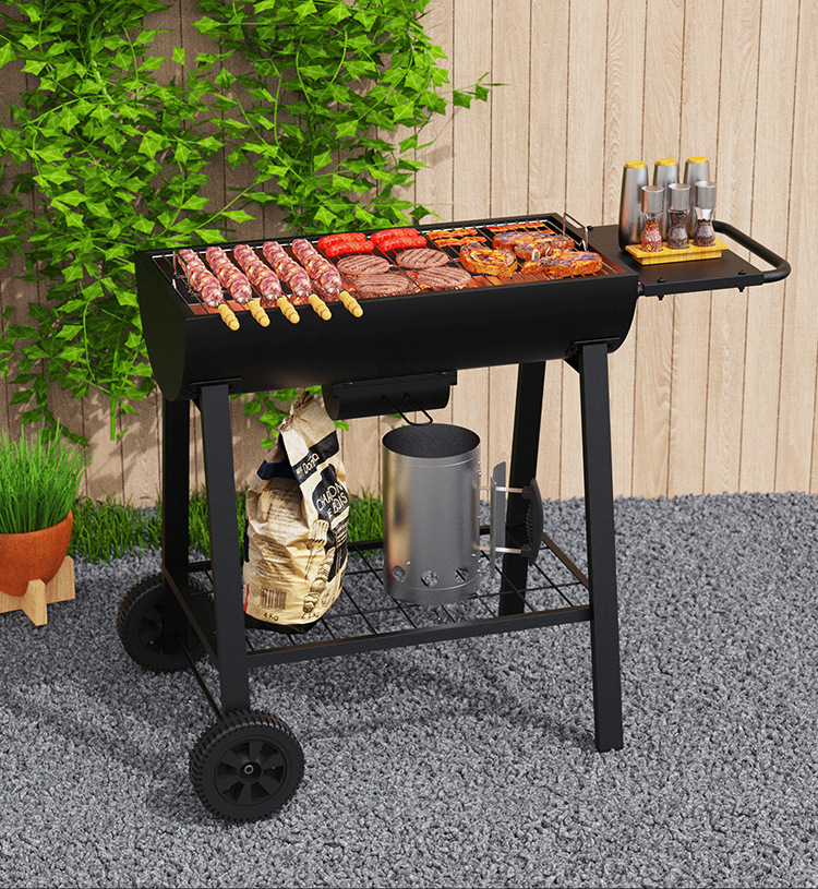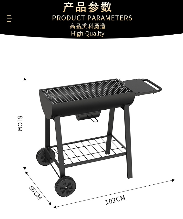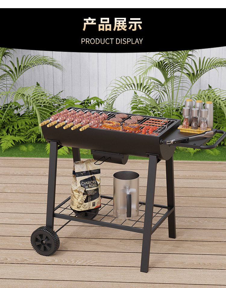 Parrilla de barbacoa grande en stock, parrilla al aire libre, carrito pequeño, barbacoa de campamento al aire libre, barbacoa americana gruesa bbq