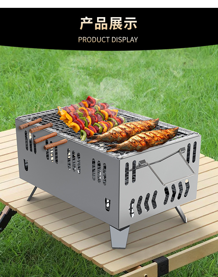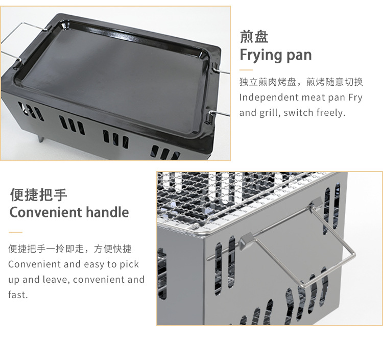 Parrilla portátil al aire libre con sartén, parrilla de doble uso, estufa de barbacoa, parrilla pequeña cuadrada, parrilla portátil