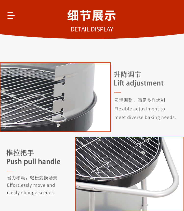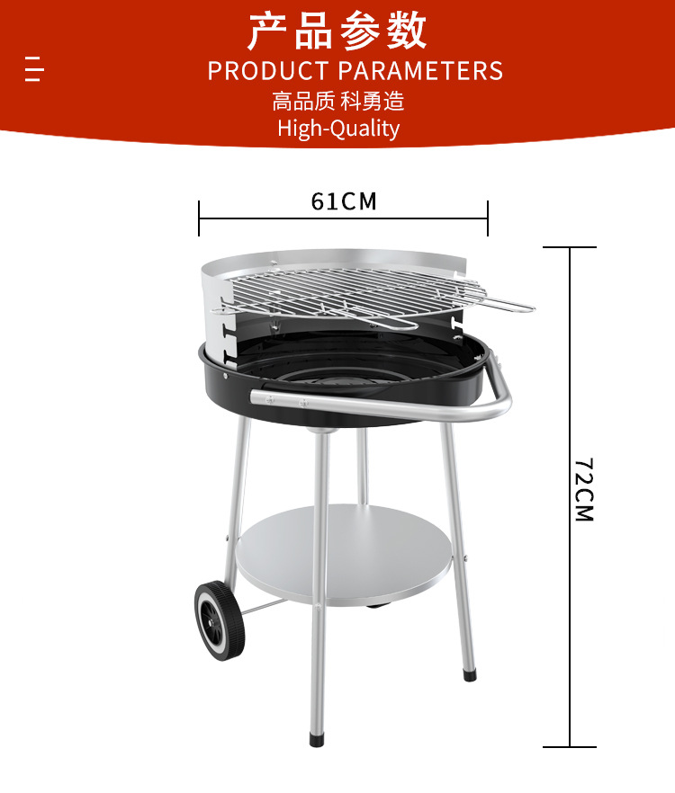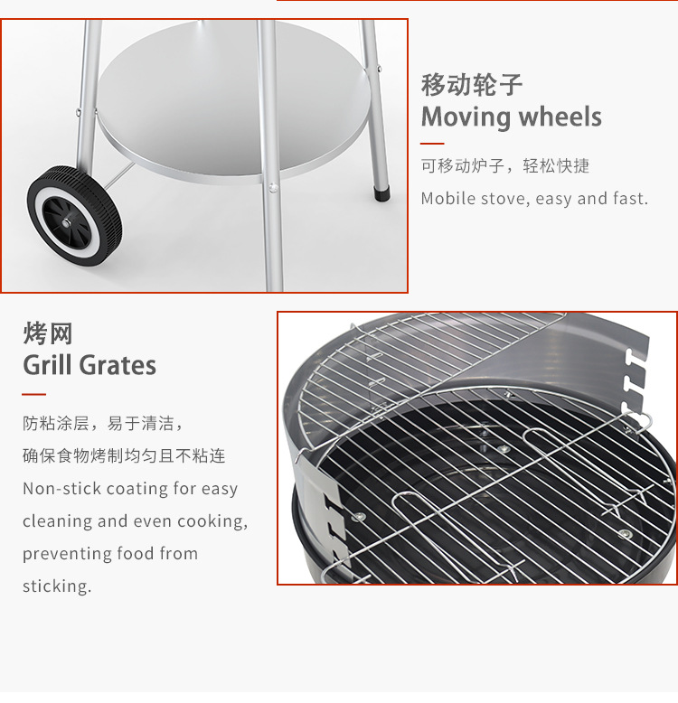 Barbacoa de carbón americana transfronteriza de 18 pulgadas, barbacoa para acampar al aire libre, horno grande portátil, horno simple redondo