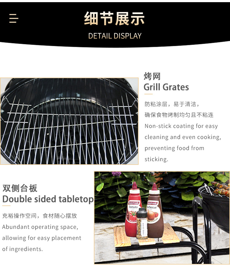 Parrilla de barbacoa de manzana transfronteriza de 18 pulgadas Parrilla de barbacoa de campamento al aire libre Parrilla de barbacoa de patio al por mayor Estufa de barbacoa multifuncional