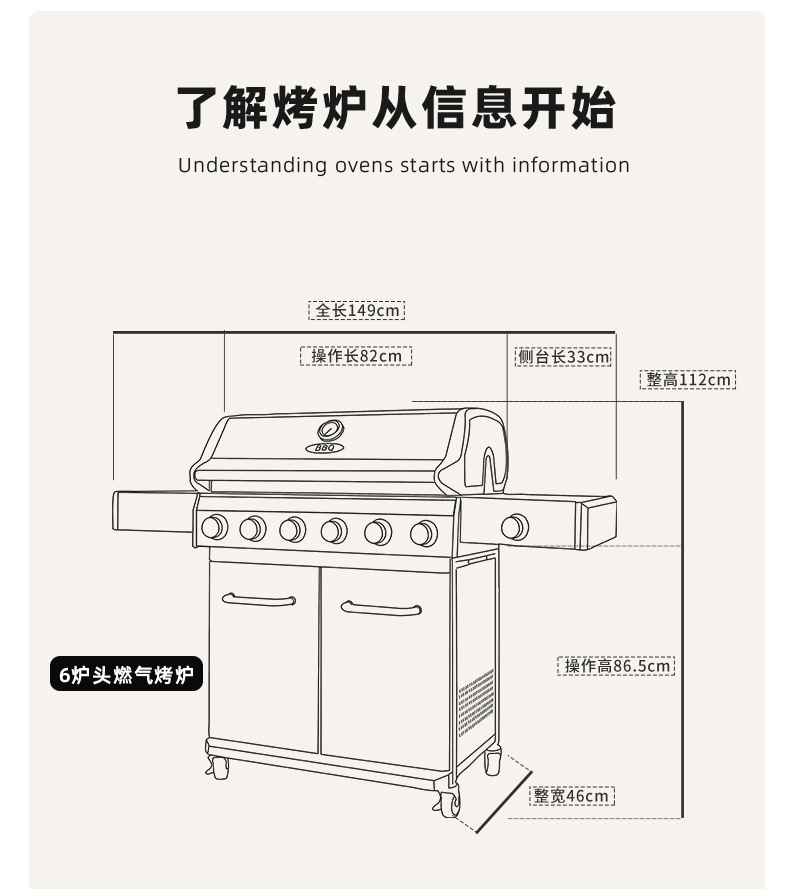 Artesanos al aire libre horno de gas parrilla de carbón doméstico parrilla de barbacoa americana parrilla de barbacoa hogar jardín terraza horno