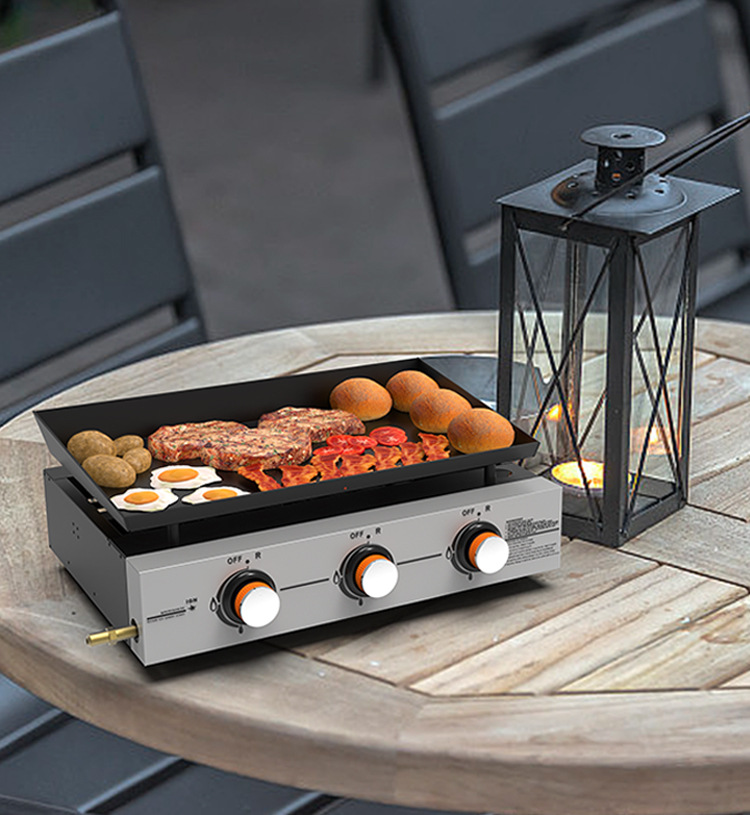 | Especificaciones de la parrilla / plato | Estufa de gas de tres cabezas [bandeja de fritura de esmalte], estufa de gas de dos cabezas [bandeja de fritura de esmalte], estufa de gas de un solo extremo [bandeja de fritura de esmalte] |