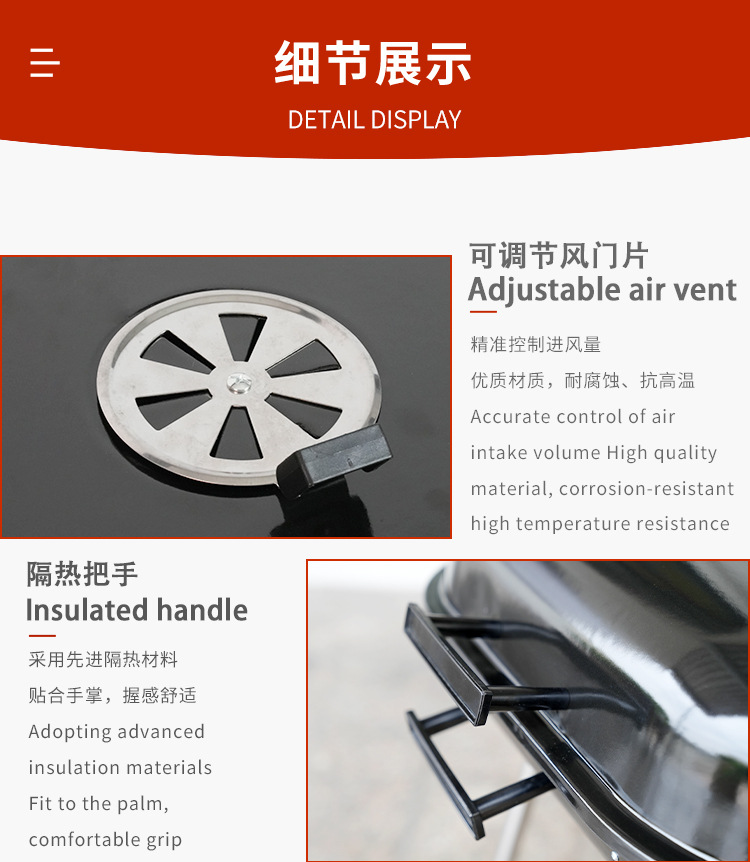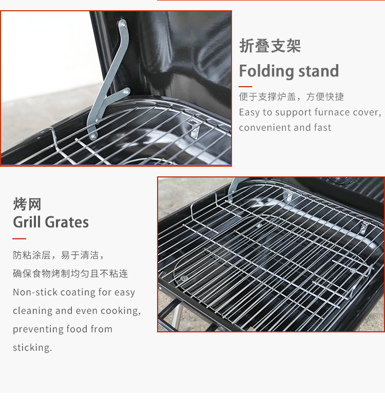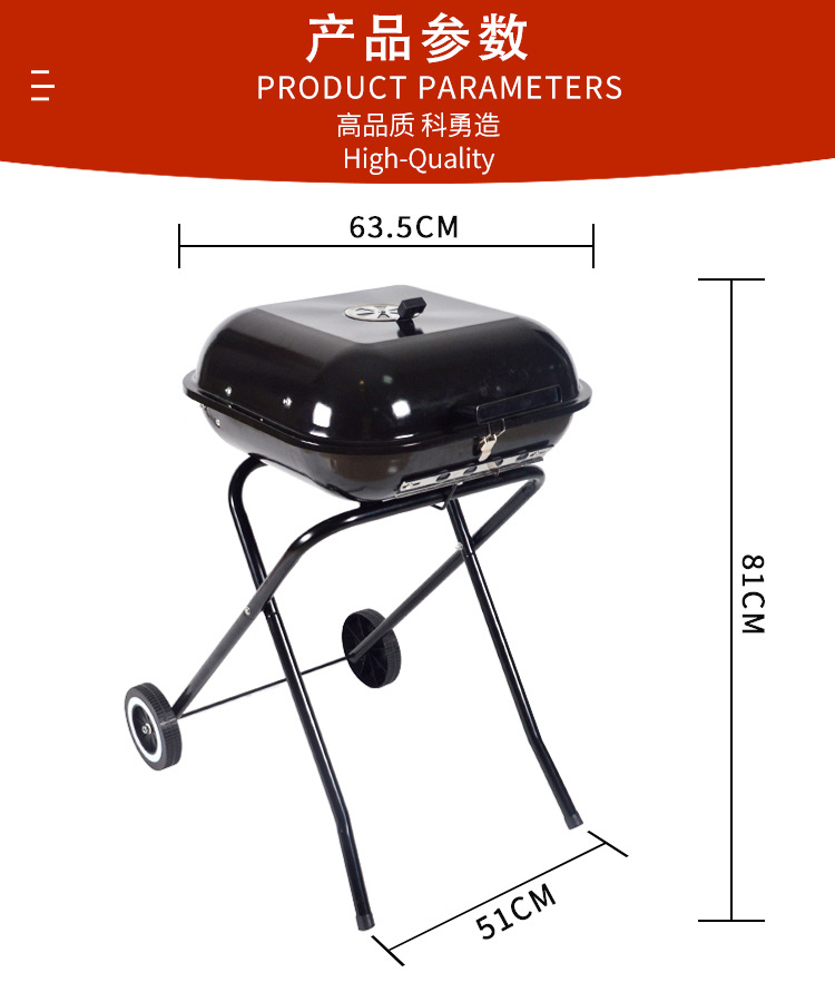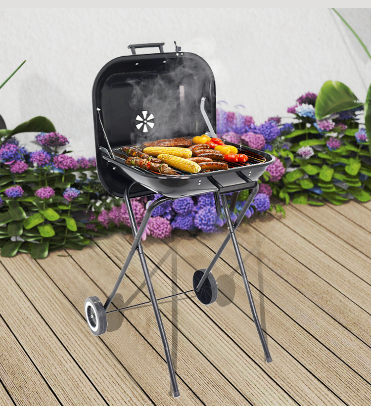 Esmalte de 18 pulgadas de hamburguesas de parrilla conveniente con piernas plegables con ruedas de parrilla al aire libre parrilla de carbón