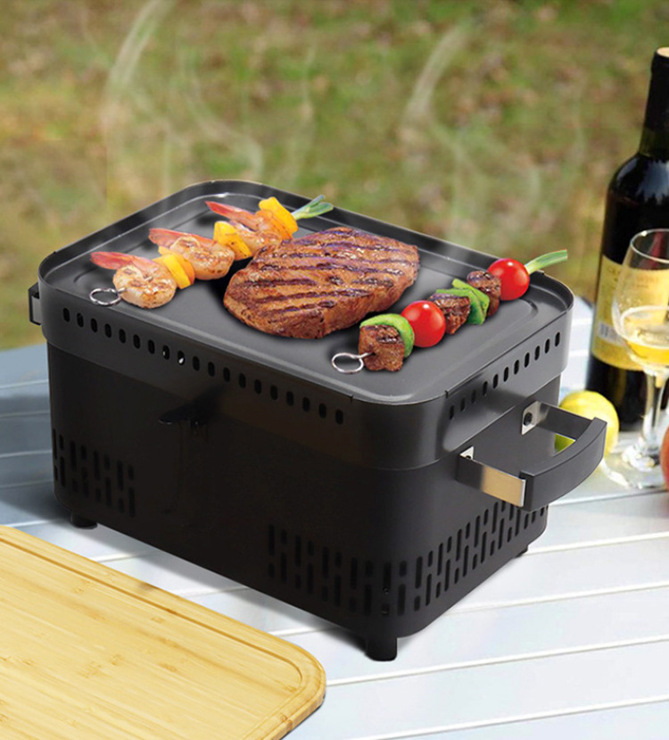 Barbacoa de camping de doble uso con tabla de cortar para freír y asar, parrilla al aire libre, parrilla de mesa portátil, estufa de camping al aire libre