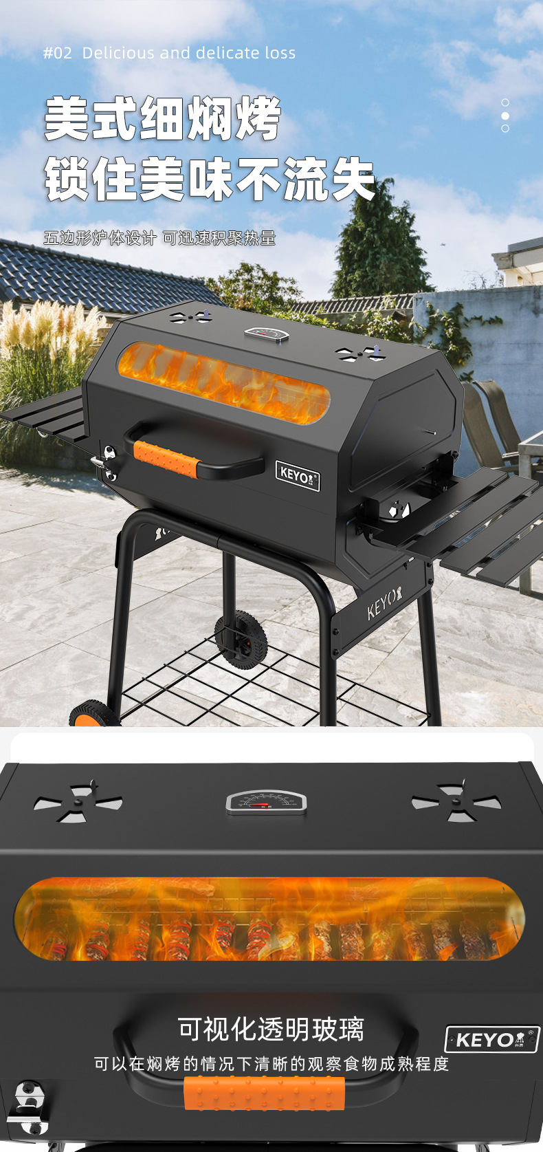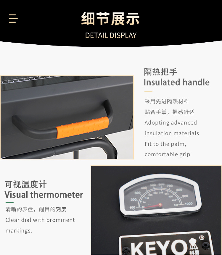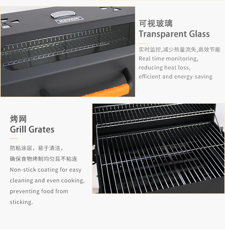 El lugar de la marca KEYO puede ver el vidrio al aire libre parrilla de barbacoa engrosada estilo industrial horno estofado americano grande