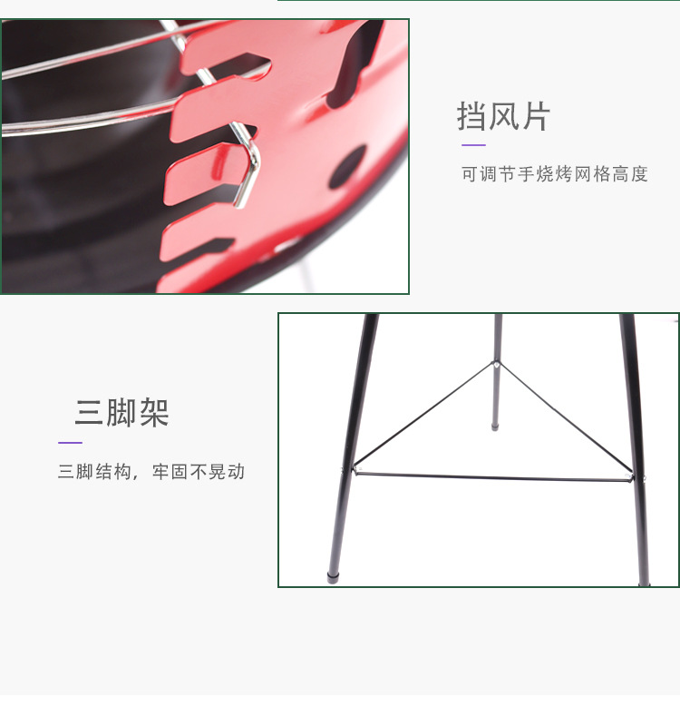 Supermercados transfronterizos al por mayor 14 pulgadas mini simple horno de barbacoa ajustable portátil parrilla de barbacoa al aire libre parrilla trípode