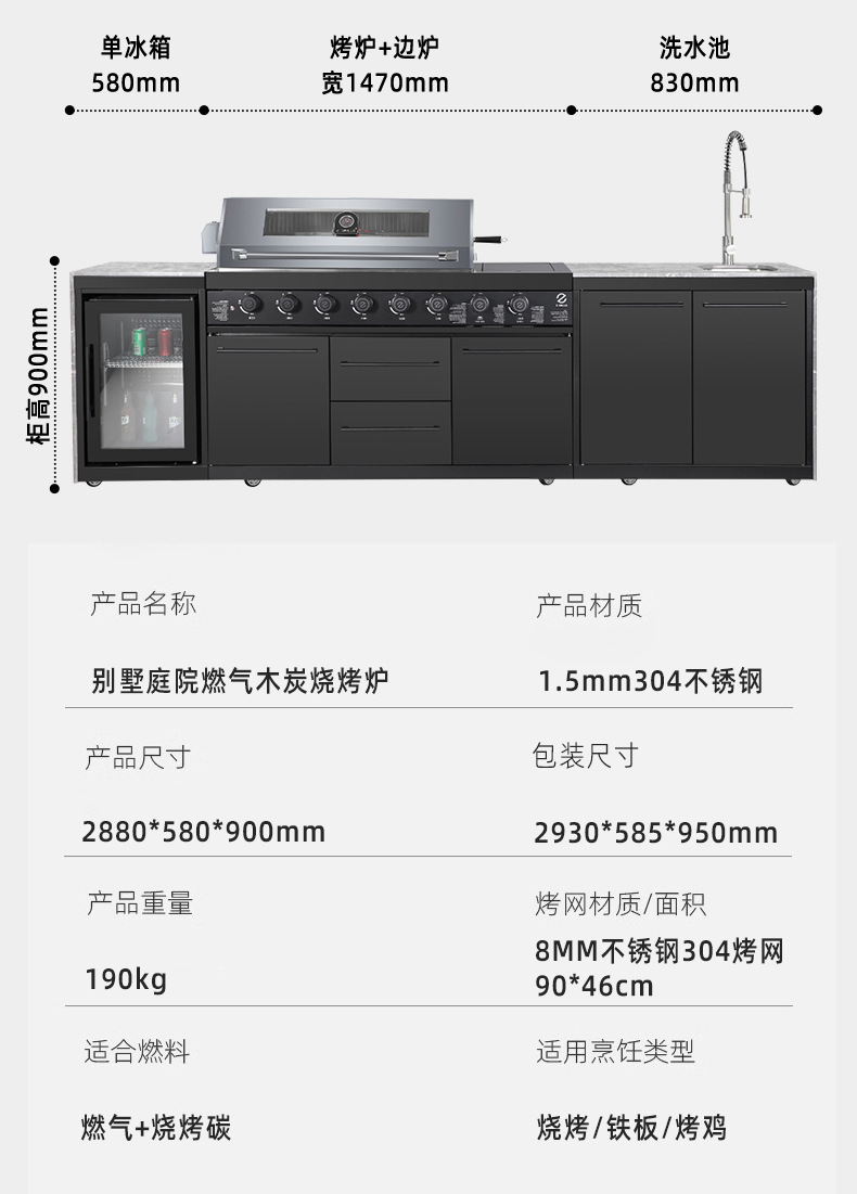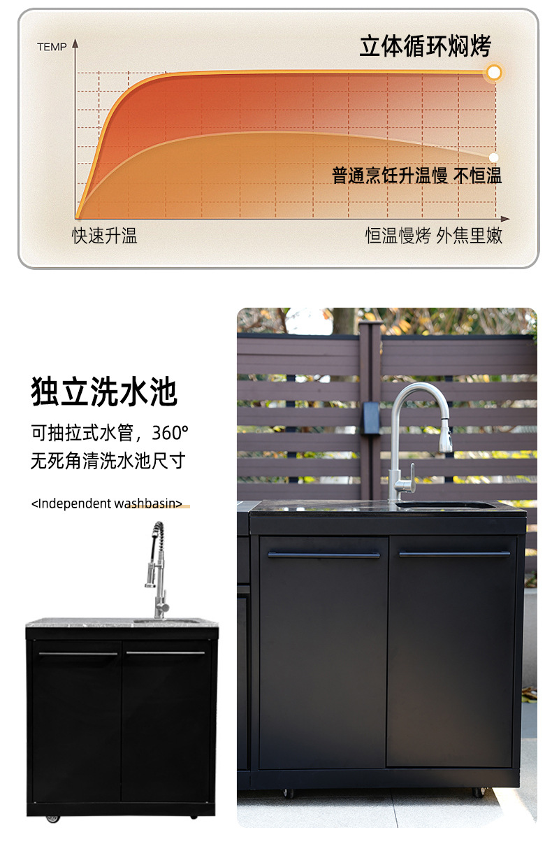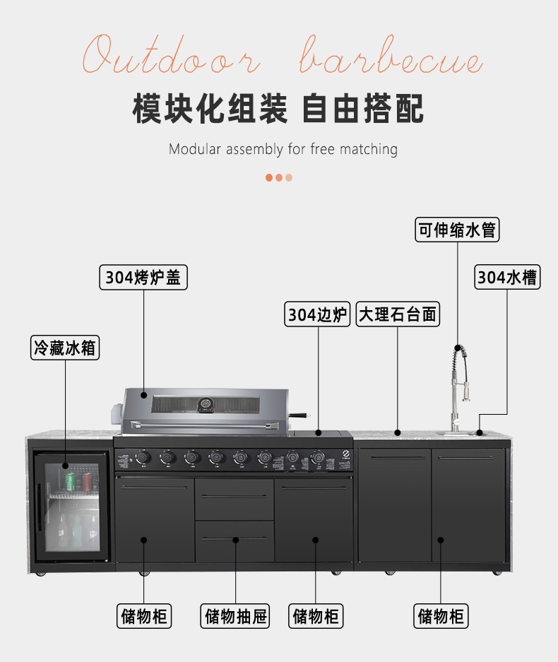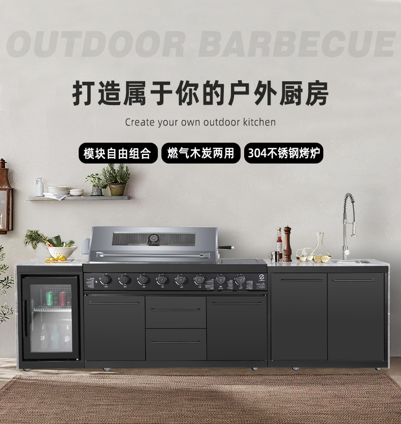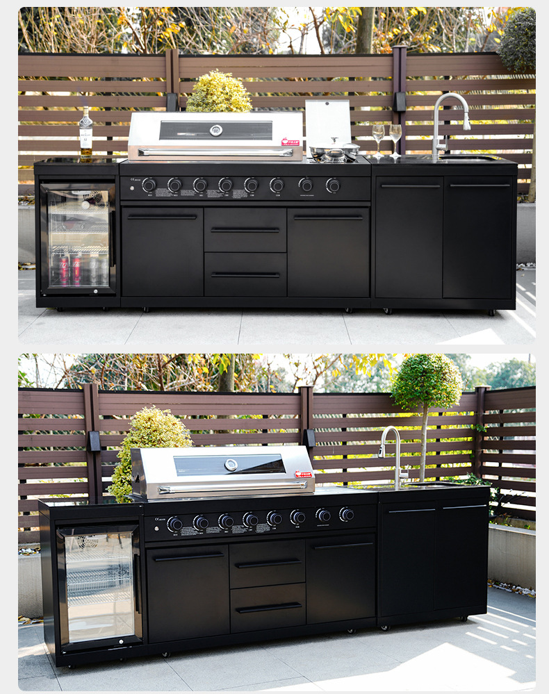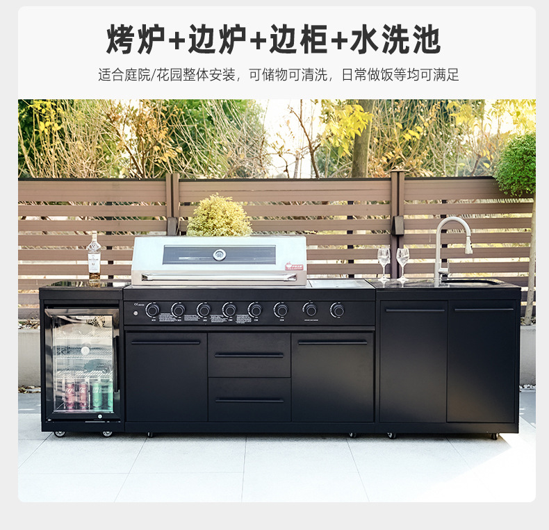 Jardín patio americano BBQ horno de parrilla de cocina al aire libre módulo de combinación de parrilla horno multifuncional gabinete de fregadero