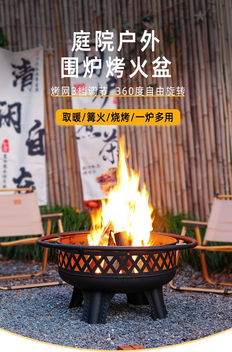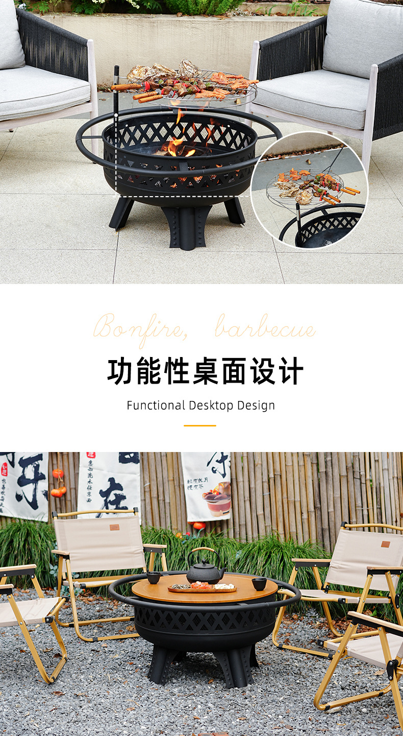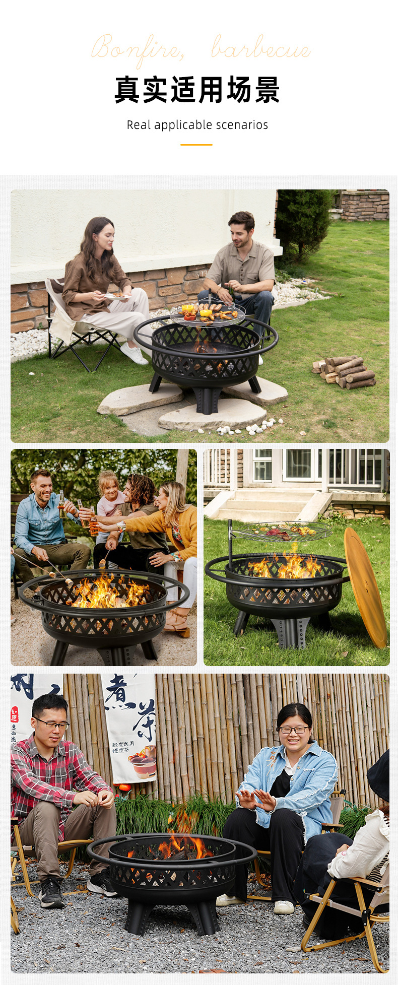 Artesanos al aire libre rejilla de campamento redonda hogar rejilla de parrilla de parrilla horno de cocina de té patio horno de leña picnic