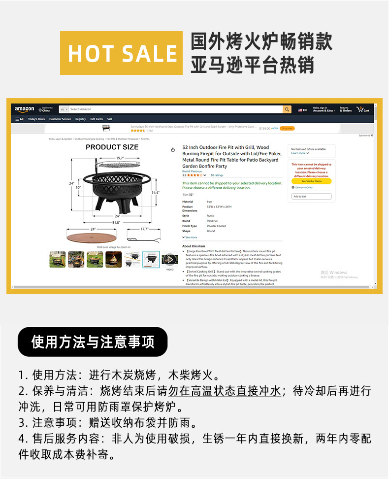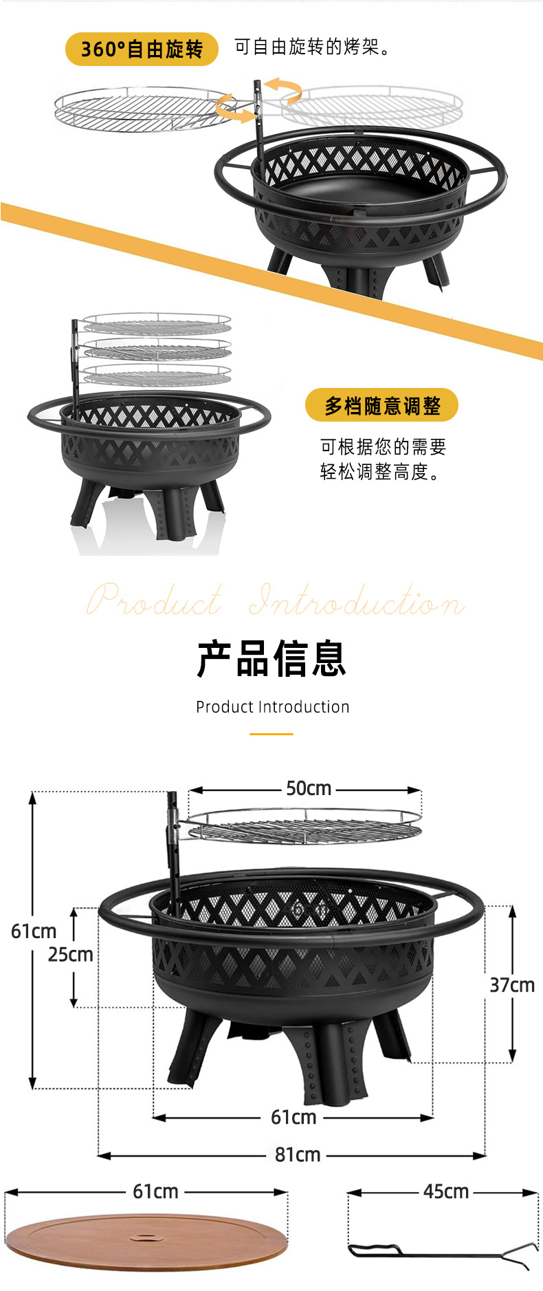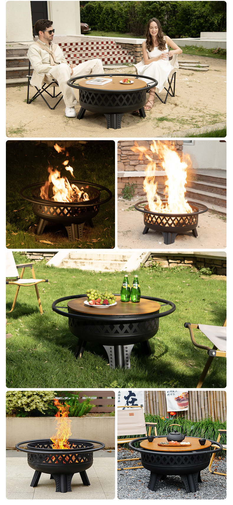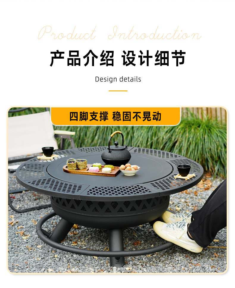 Artesanos al aire libre rejilla de campamento redonda hogar rejilla de parrilla de parrilla horno de cocina de té patio horno de leña picnic