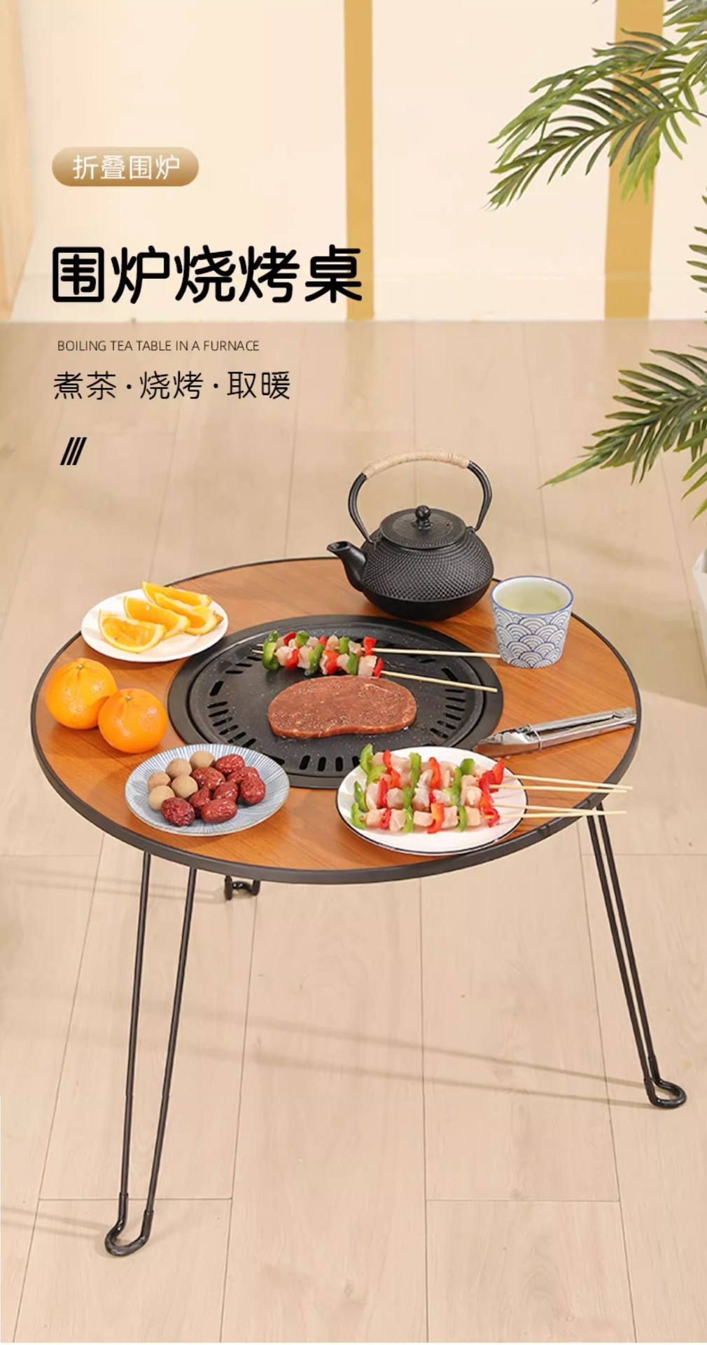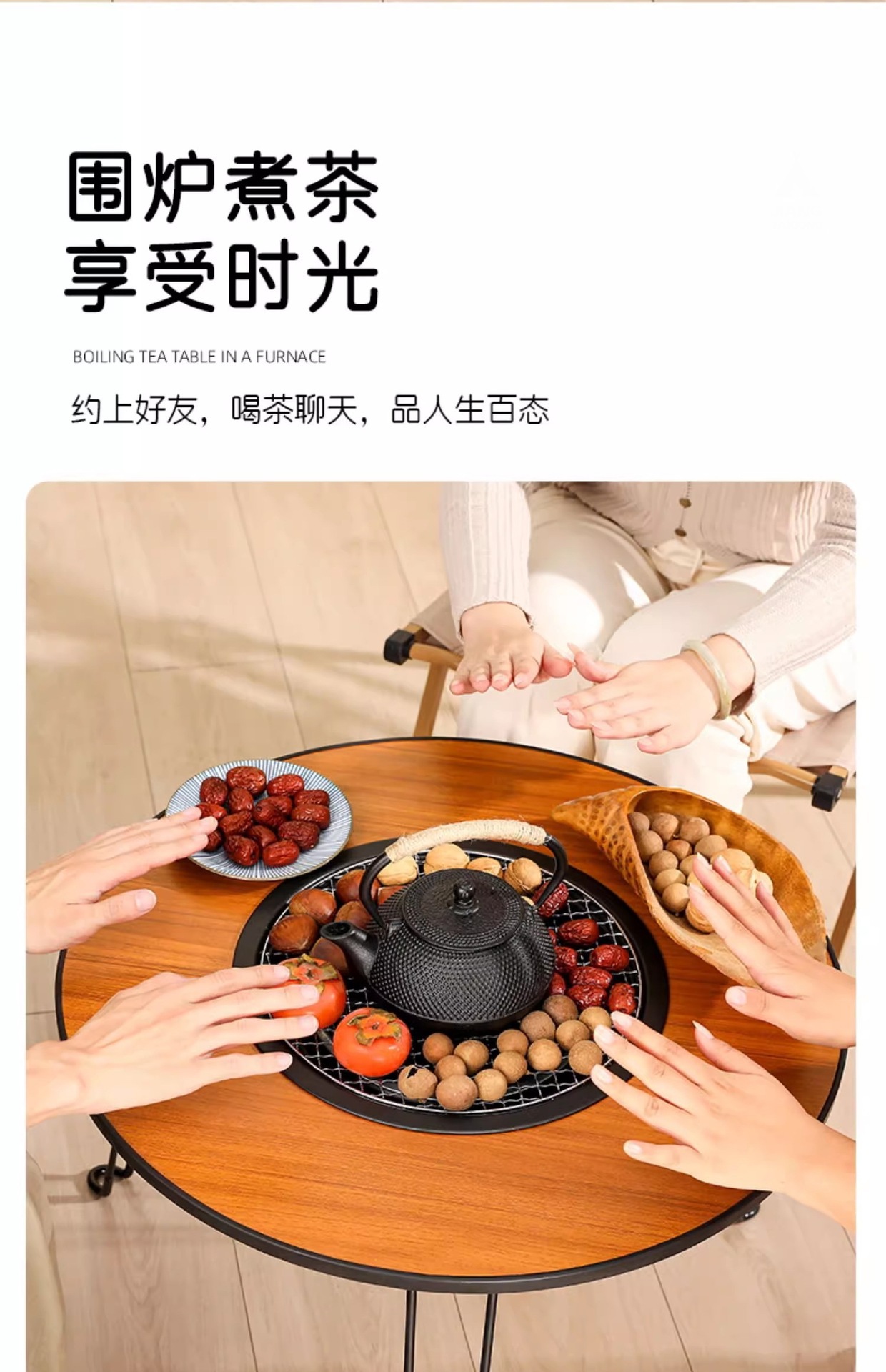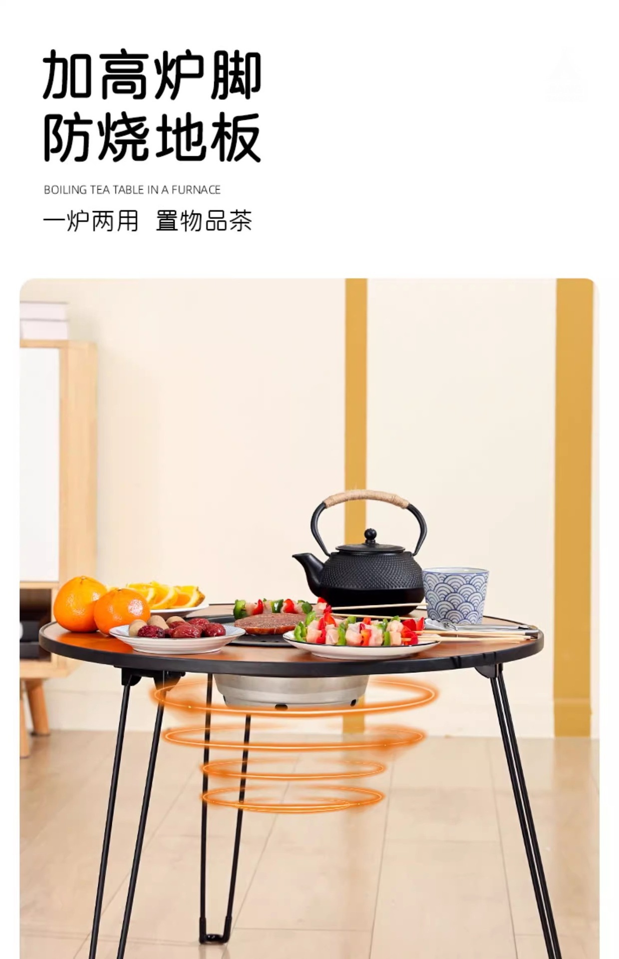 Nueva mesa de camping al aire libre Mesa Redonda barbacoa estufa Parrilla de cocina mesa de té olla caliente integrado portátil auto-conducción de viaje