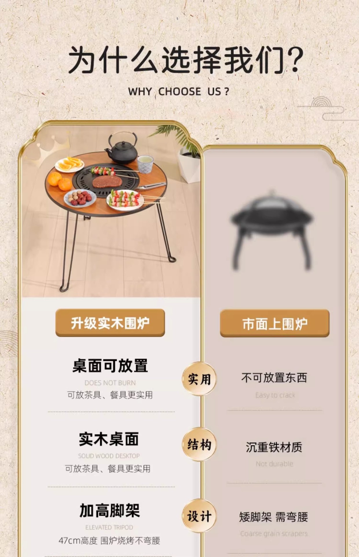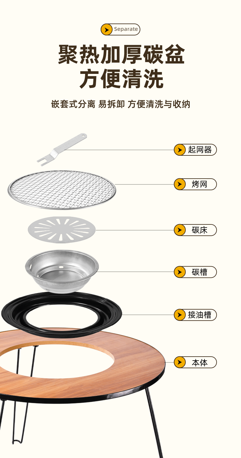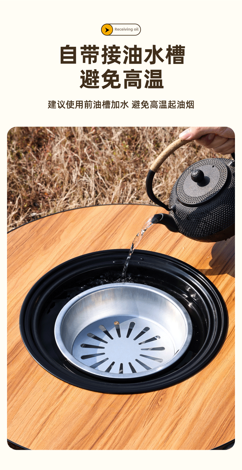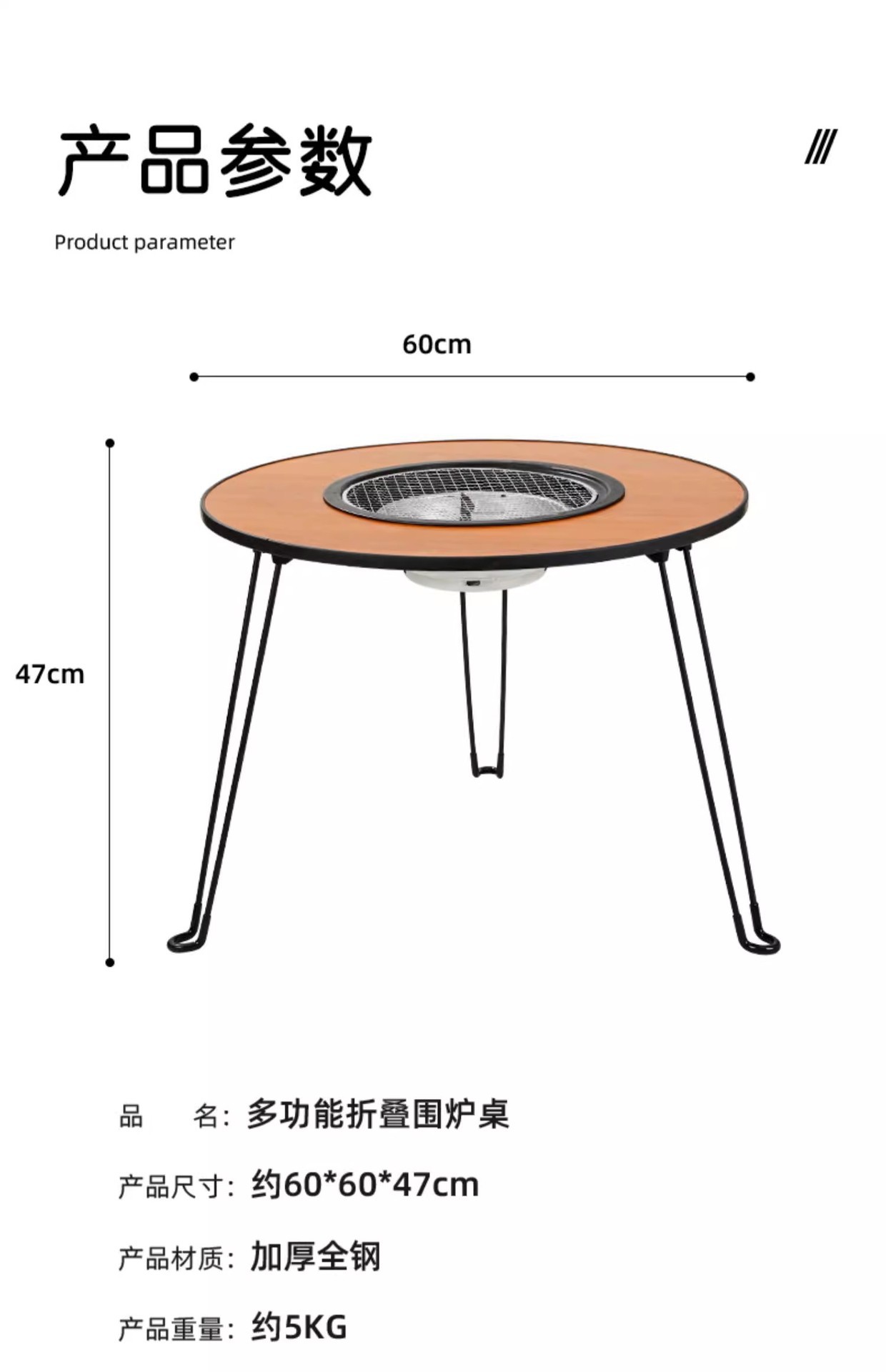 Nueva mesa de camping al aire libre Mesa Redonda barbacoa estufa Parrilla de cocina mesa de té olla caliente integrado portátil auto-conducción de viaje