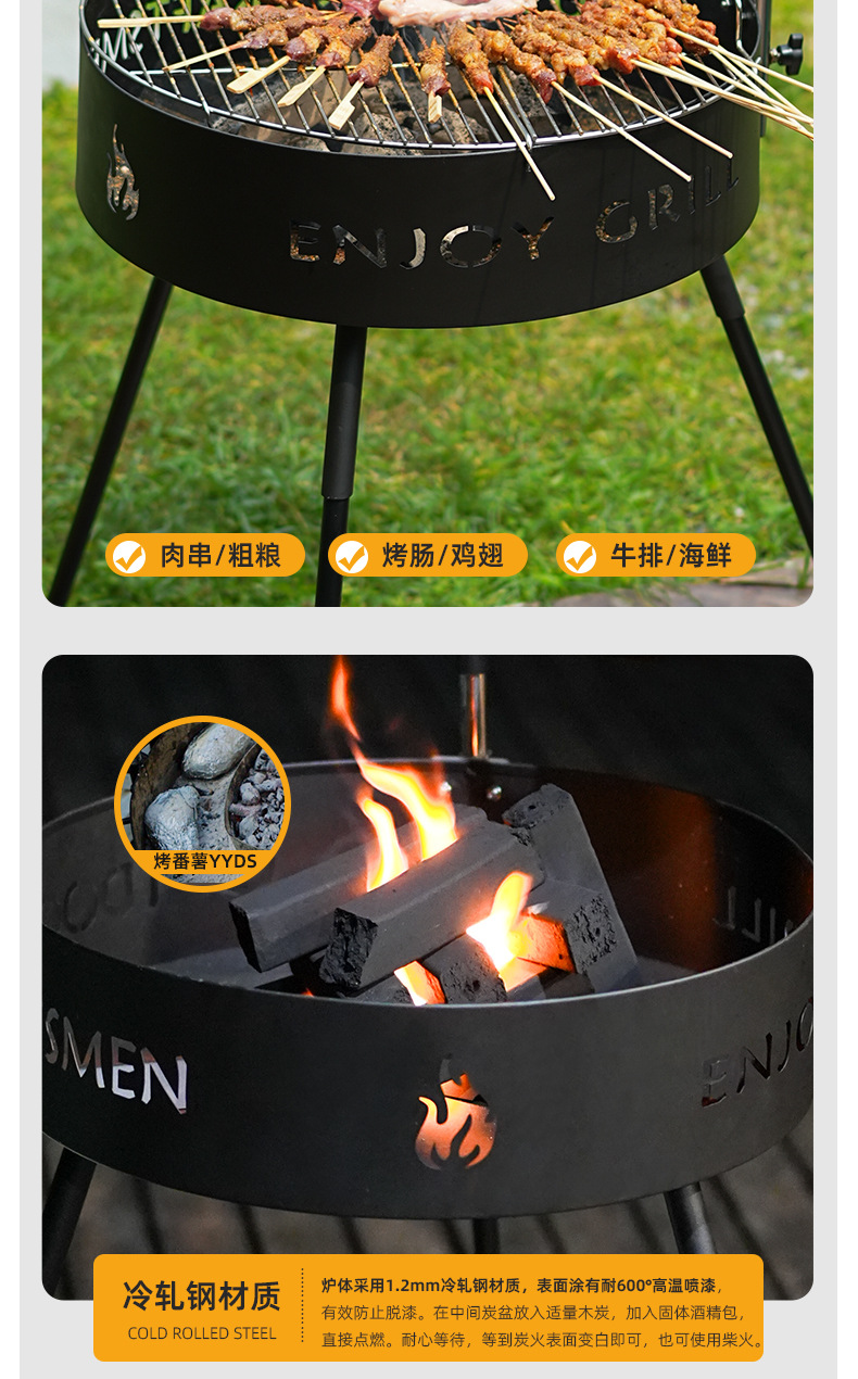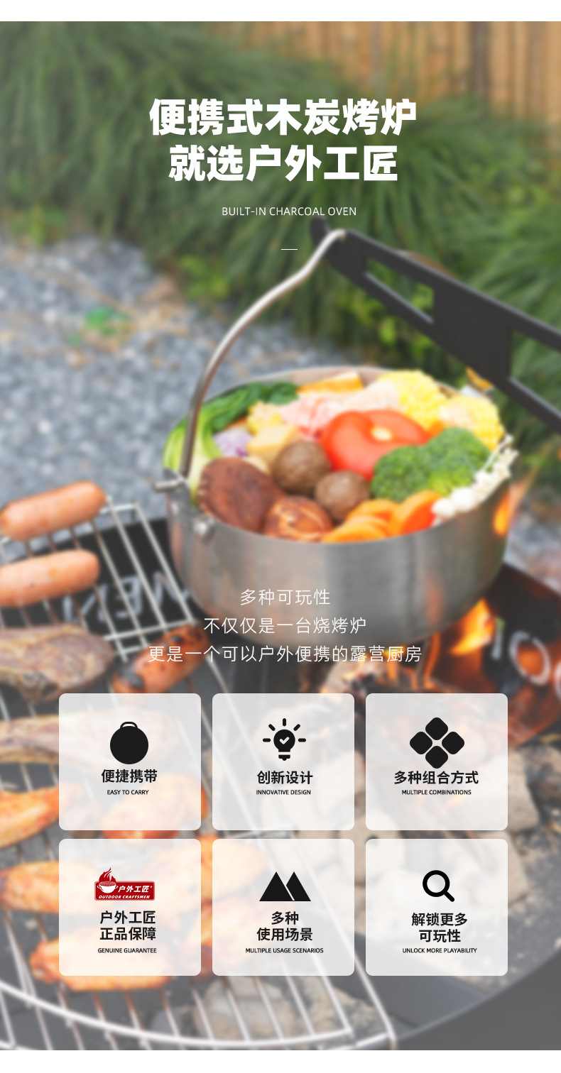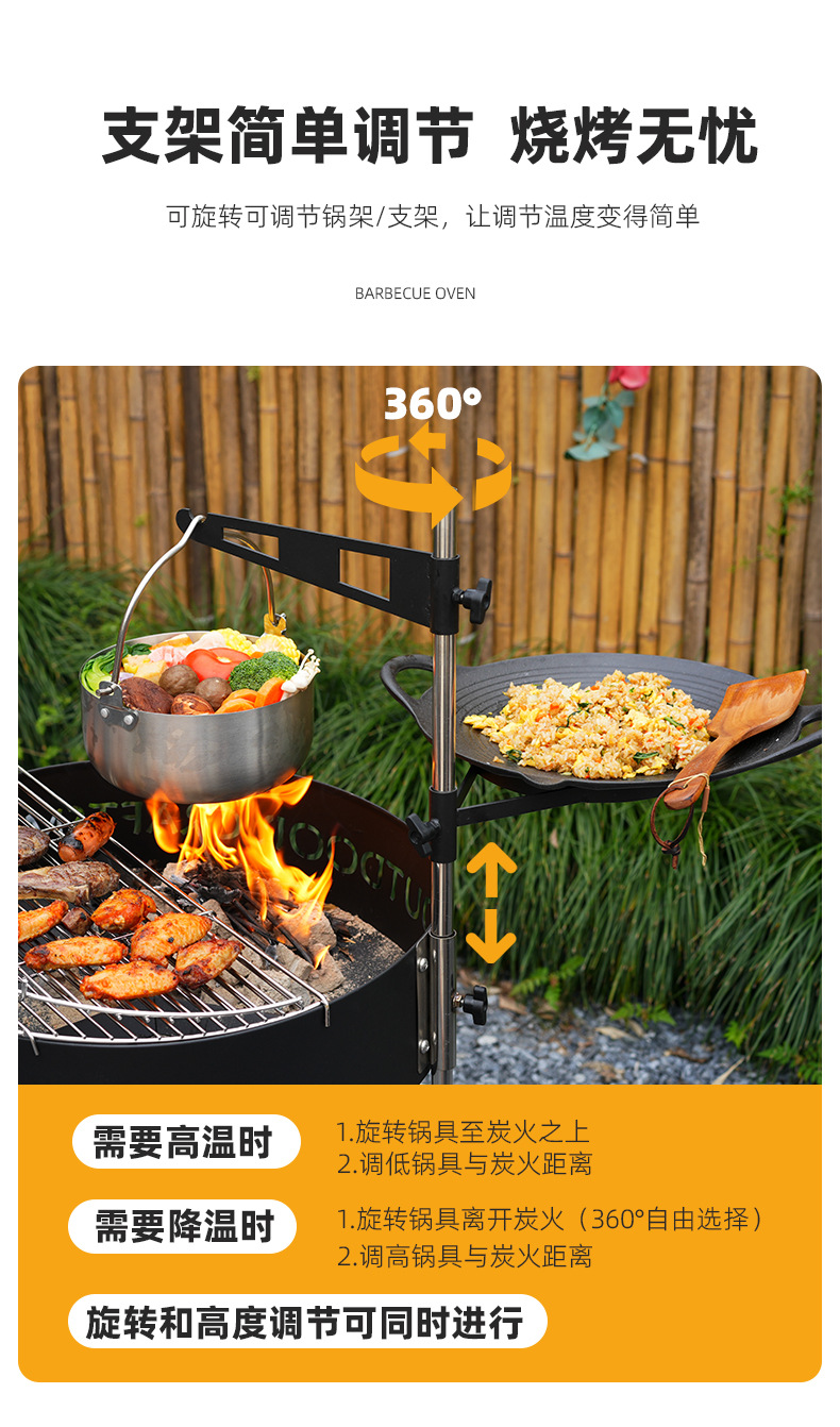 Parrilla de barbacoa artesanal al aire libre, horno de barbacoa multifuncional de pavo, horno de carbón doméstico al aire libre, horno de camping plegable