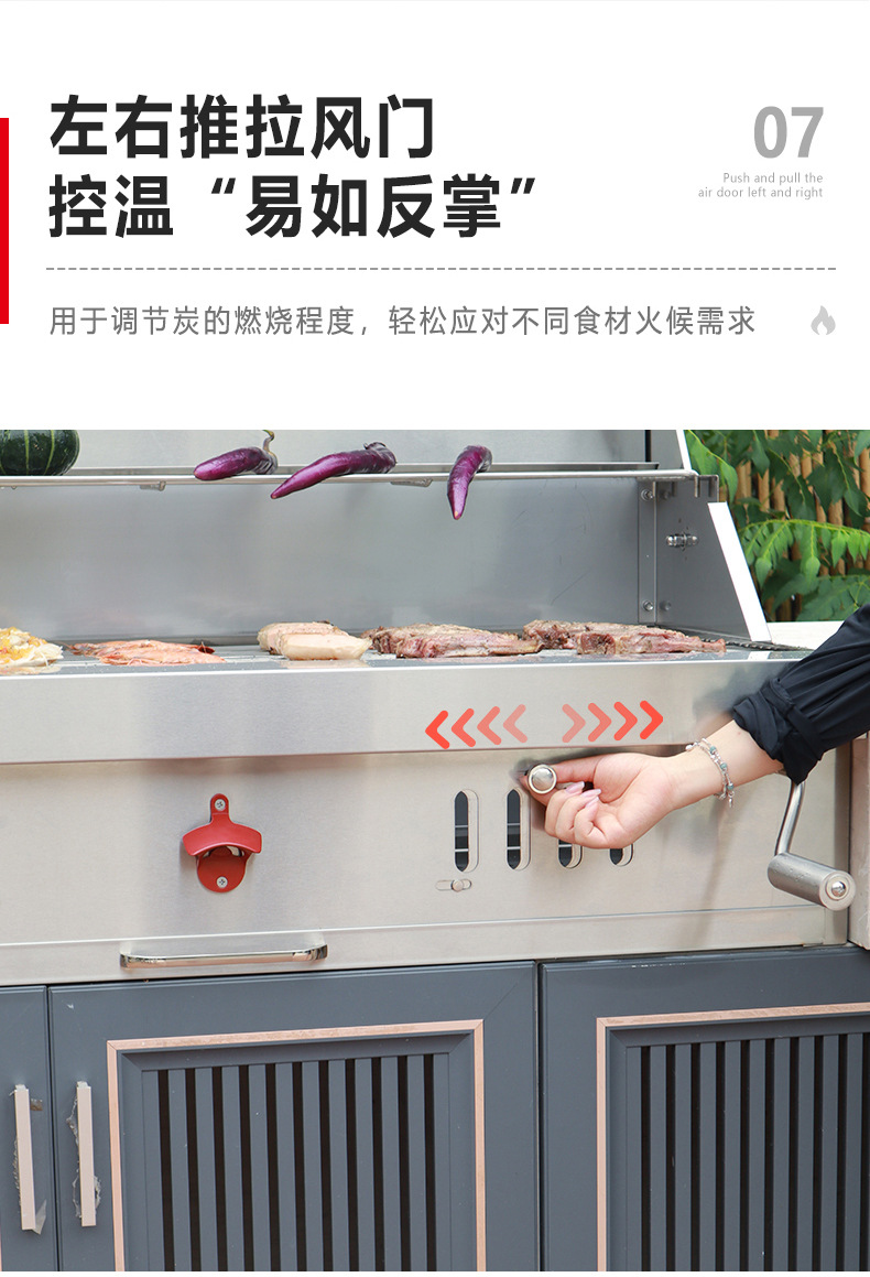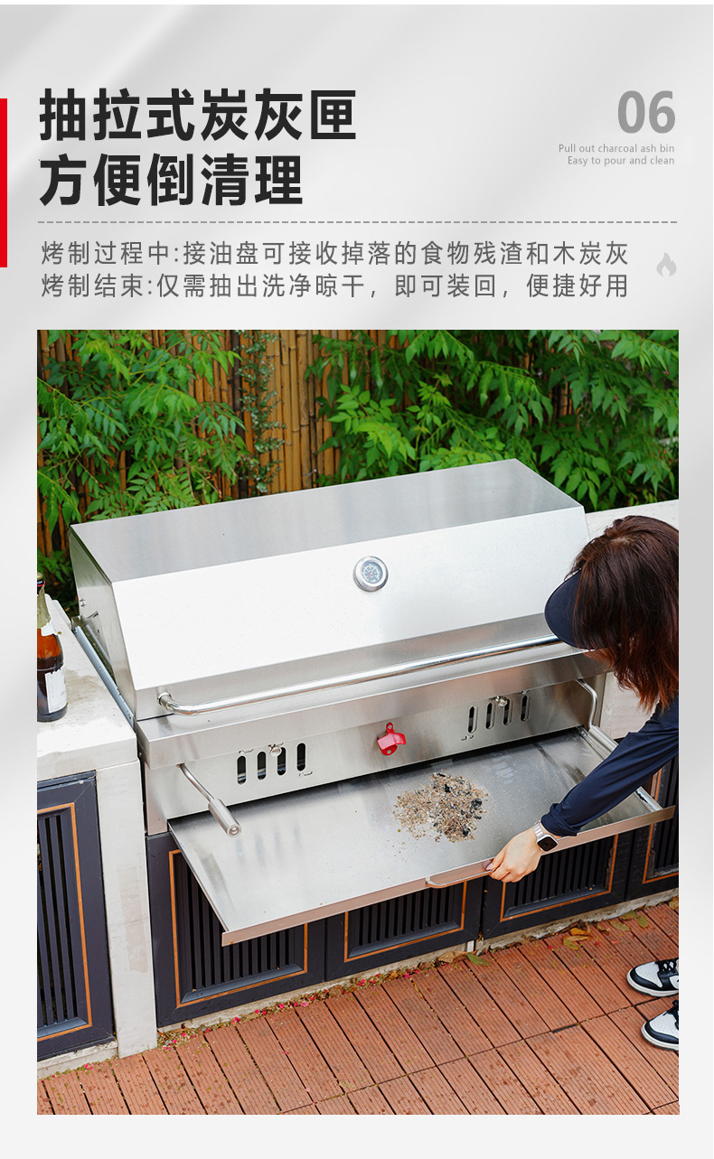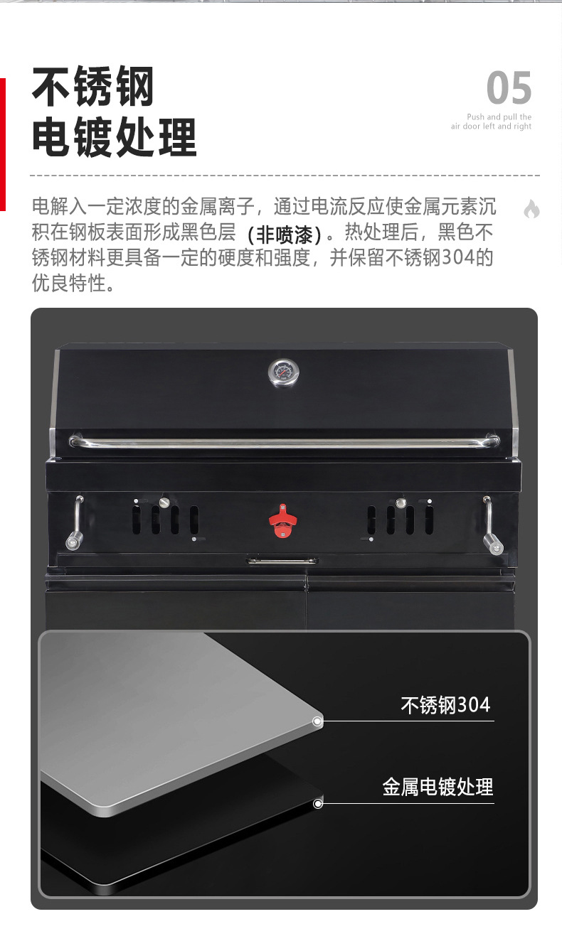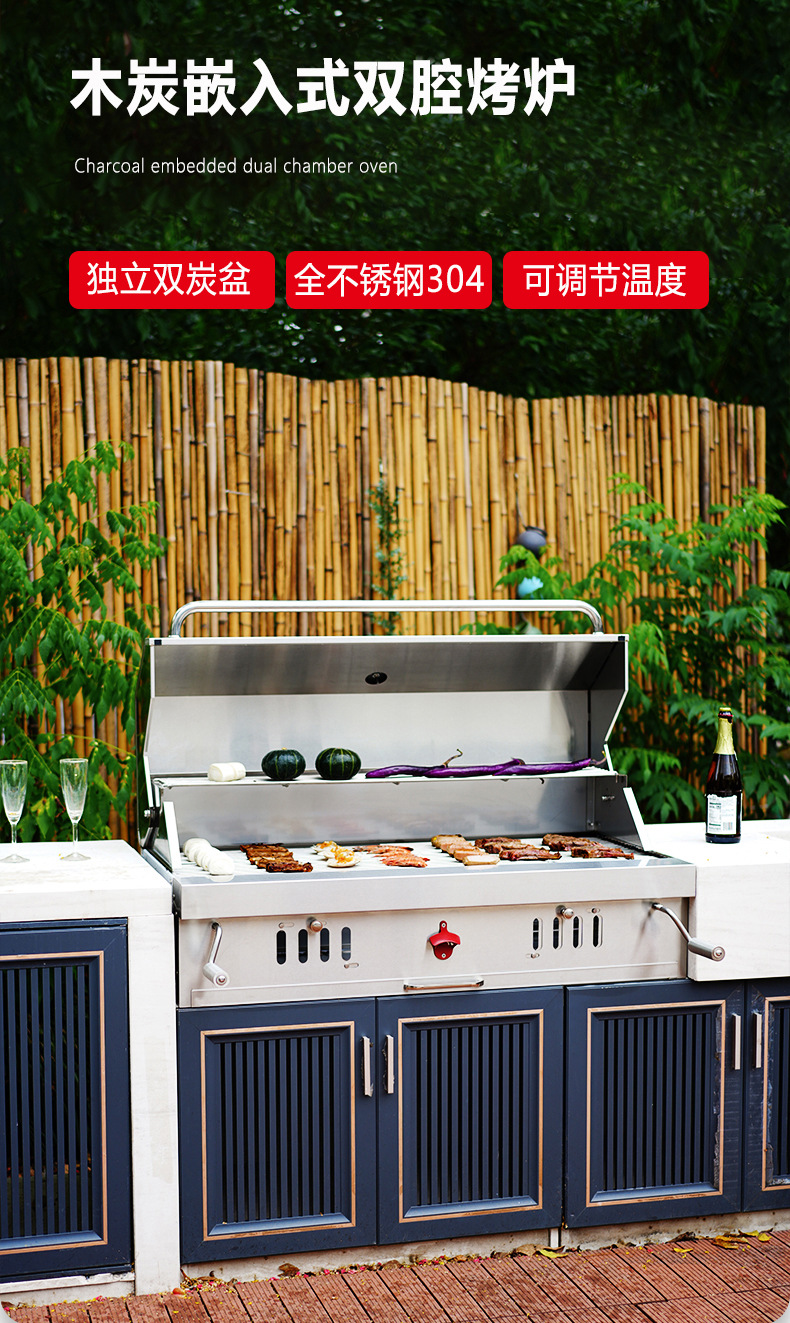 Artesanos al aire libre carbón incrustado horno de barbacoa 304 acero inoxidable carbón horno de barbacoa casa patio parrilla de barbacoa