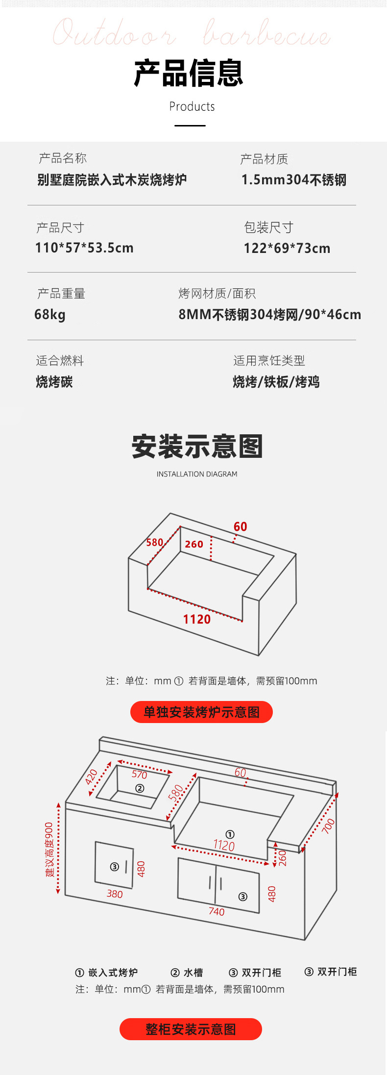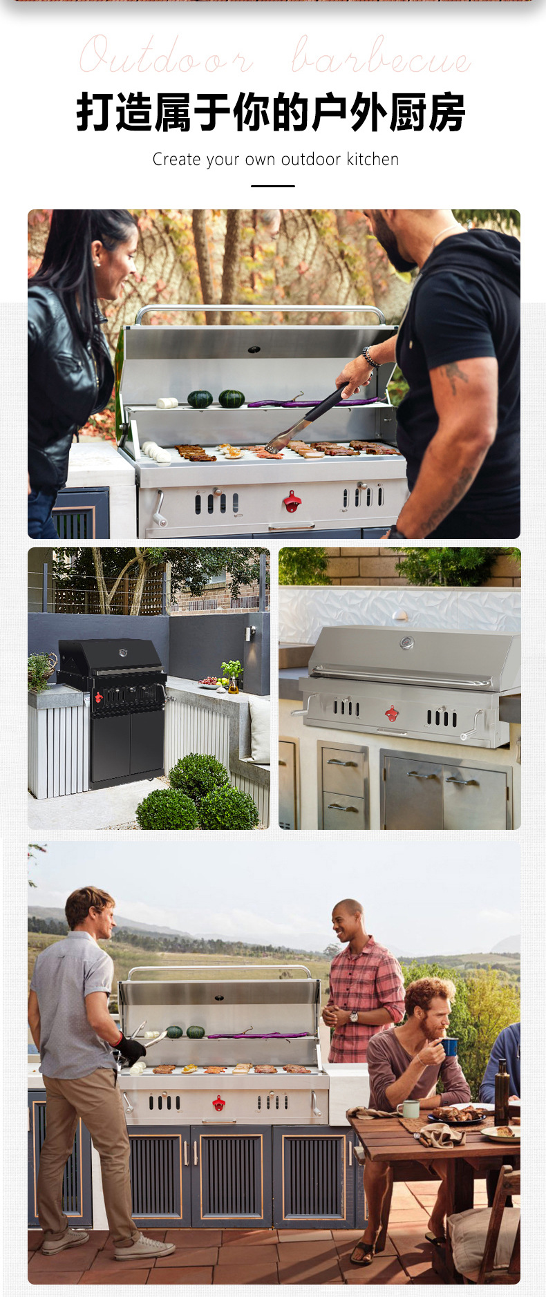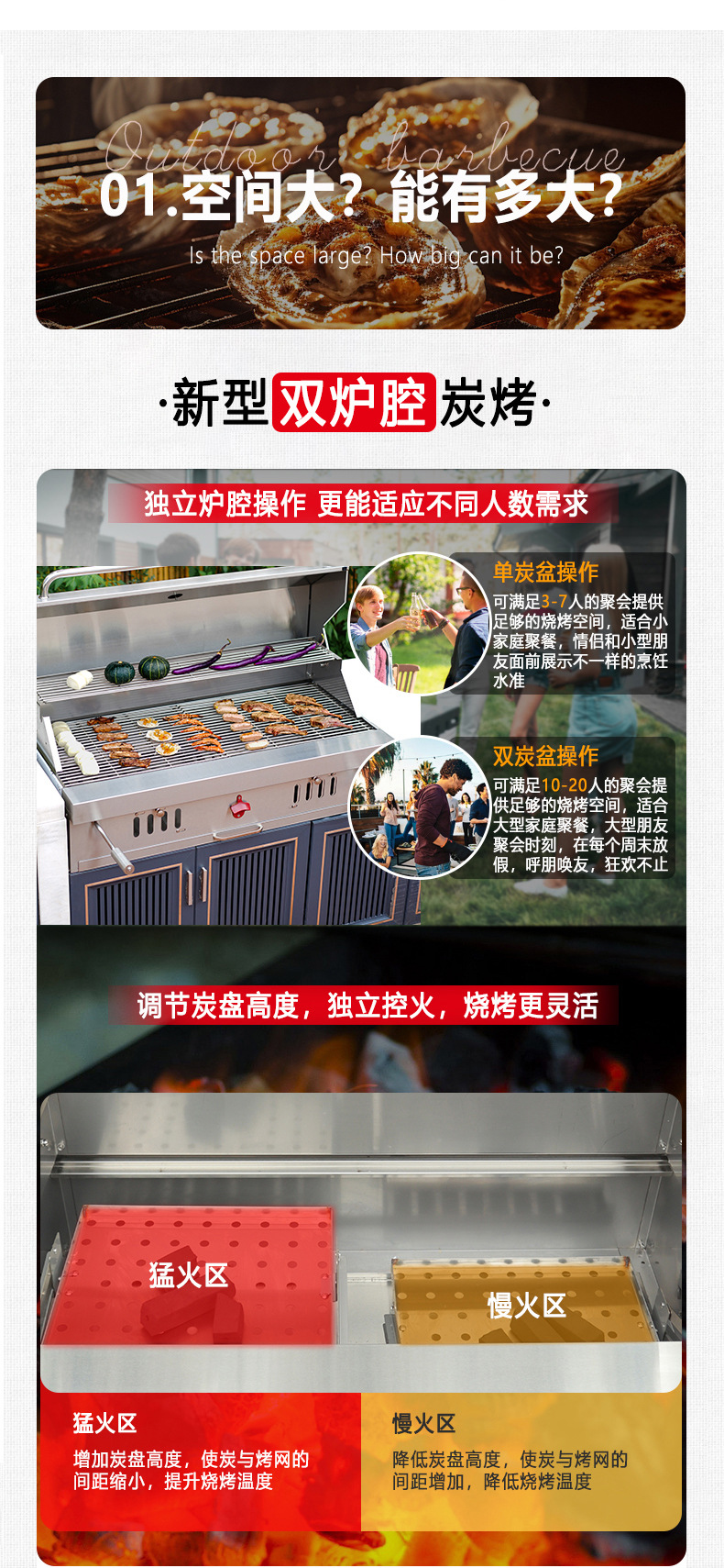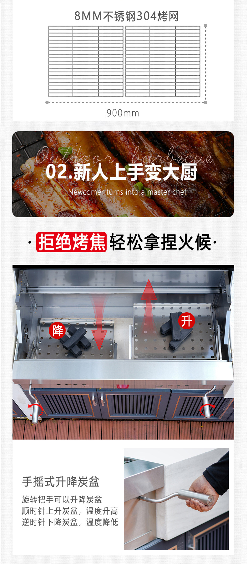 Artesanos al aire libre carbón incrustado horno de barbacoa 304 acero inoxidable carbón horno de barbacoa casa patio parrilla de barbacoa