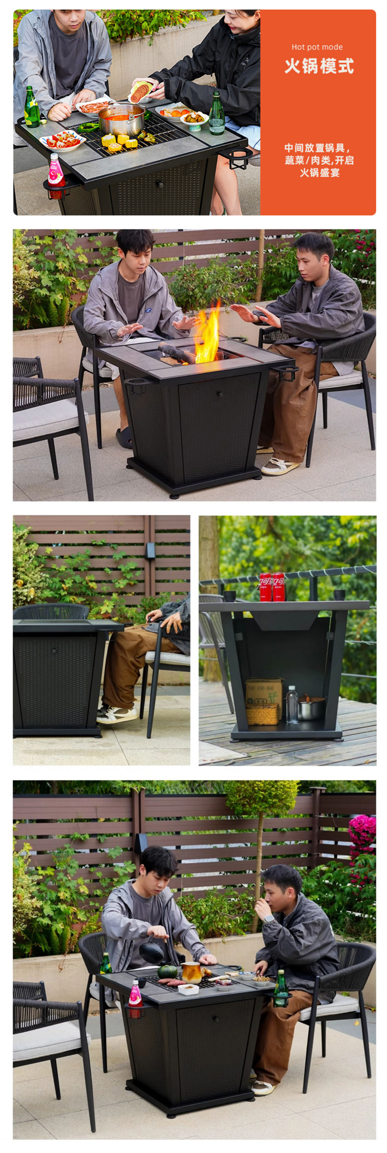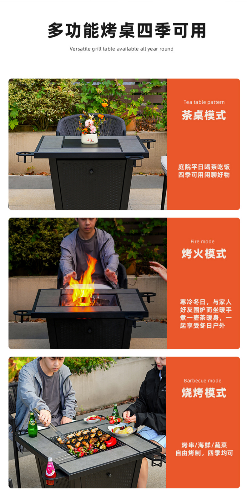 Jardín al aire libre patio horno de barbacoa de carbón leña tabla de barbacoa doméstica parrilla horno de carbón asado acero inoxidable BBQ