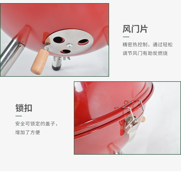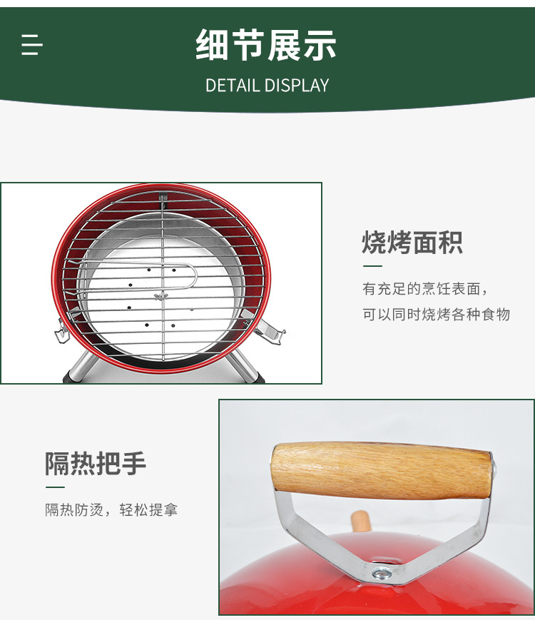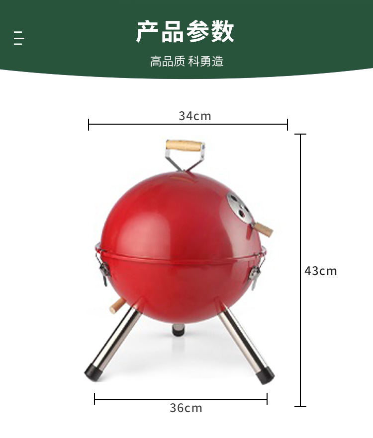 Gran por mayor parrilla de carbón portátil al aire libre de 12 pulgadas parrilla de barbacoa portátil redonda horno de fútbol
