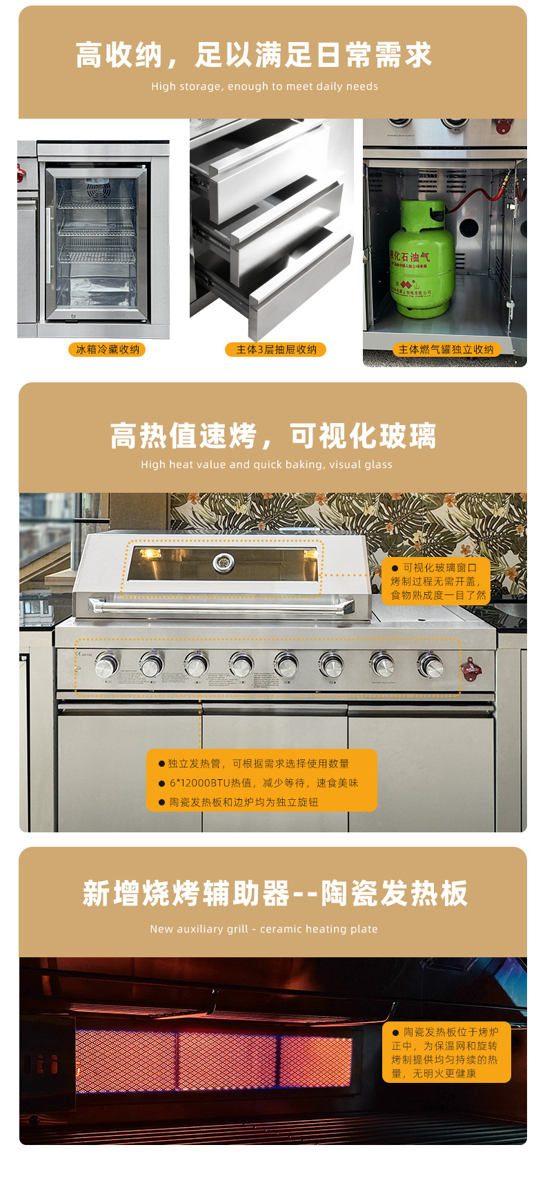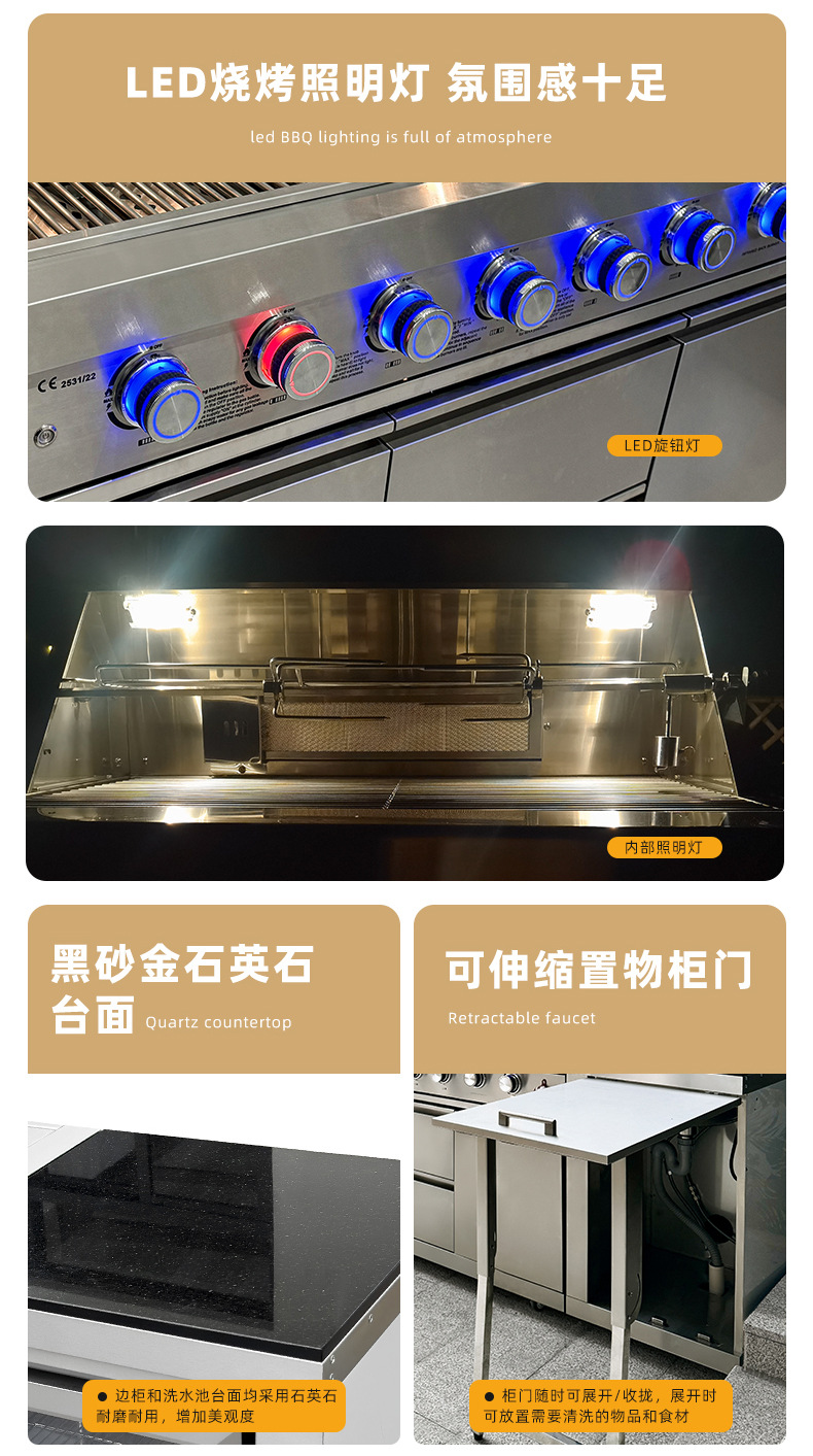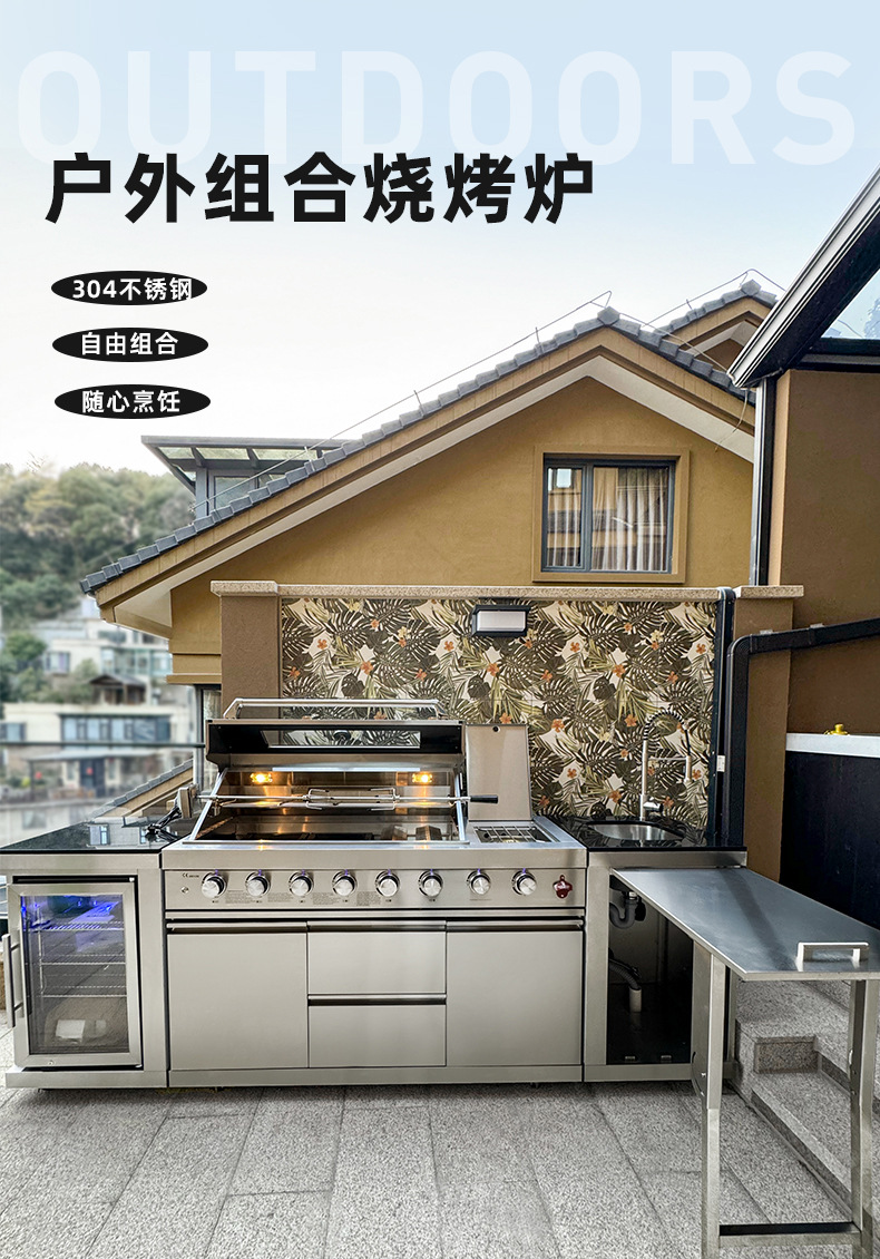Jardín al aire libre patio horno de barbacoa de gas de doble propósito villa BBQ rack horno integral gabinete de cocción