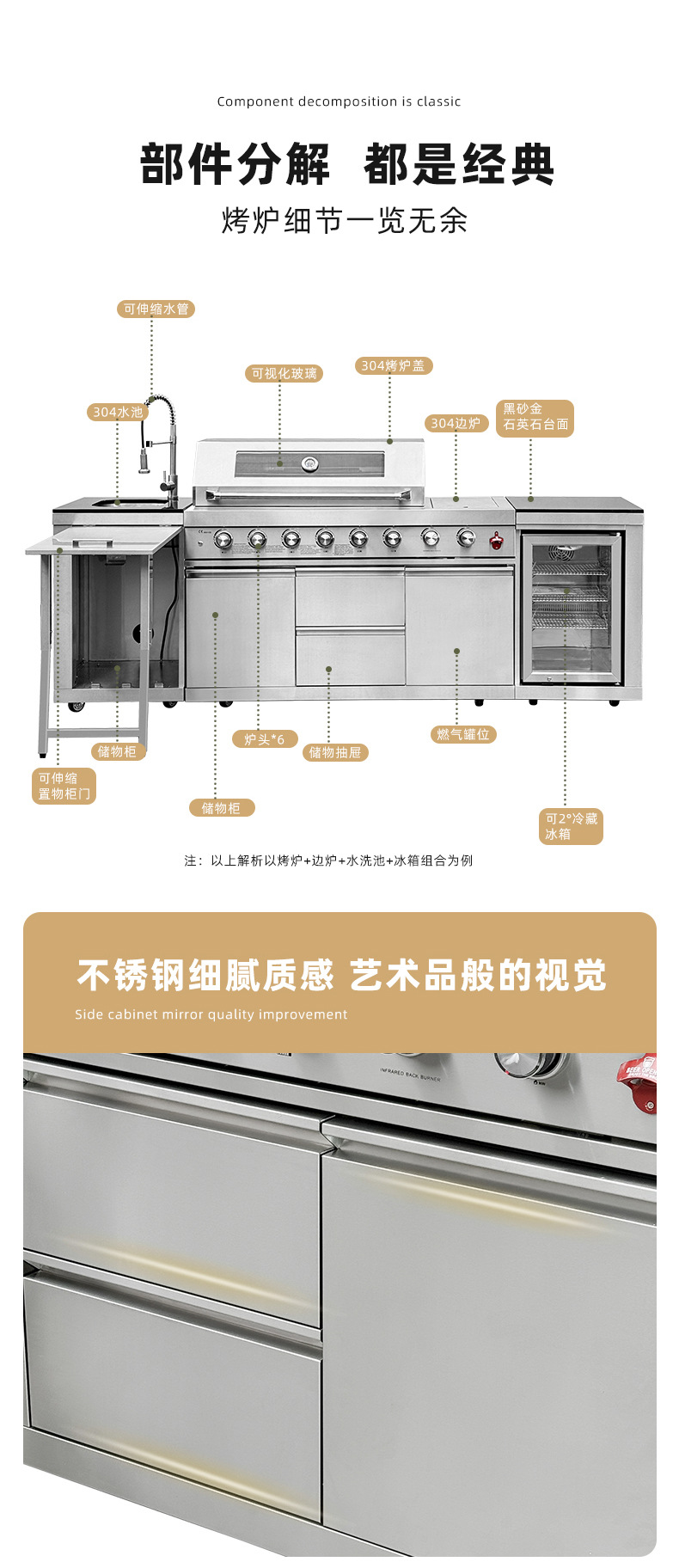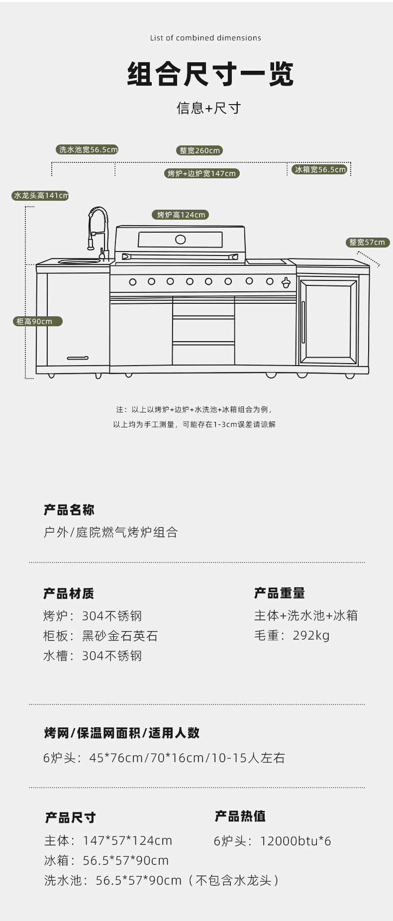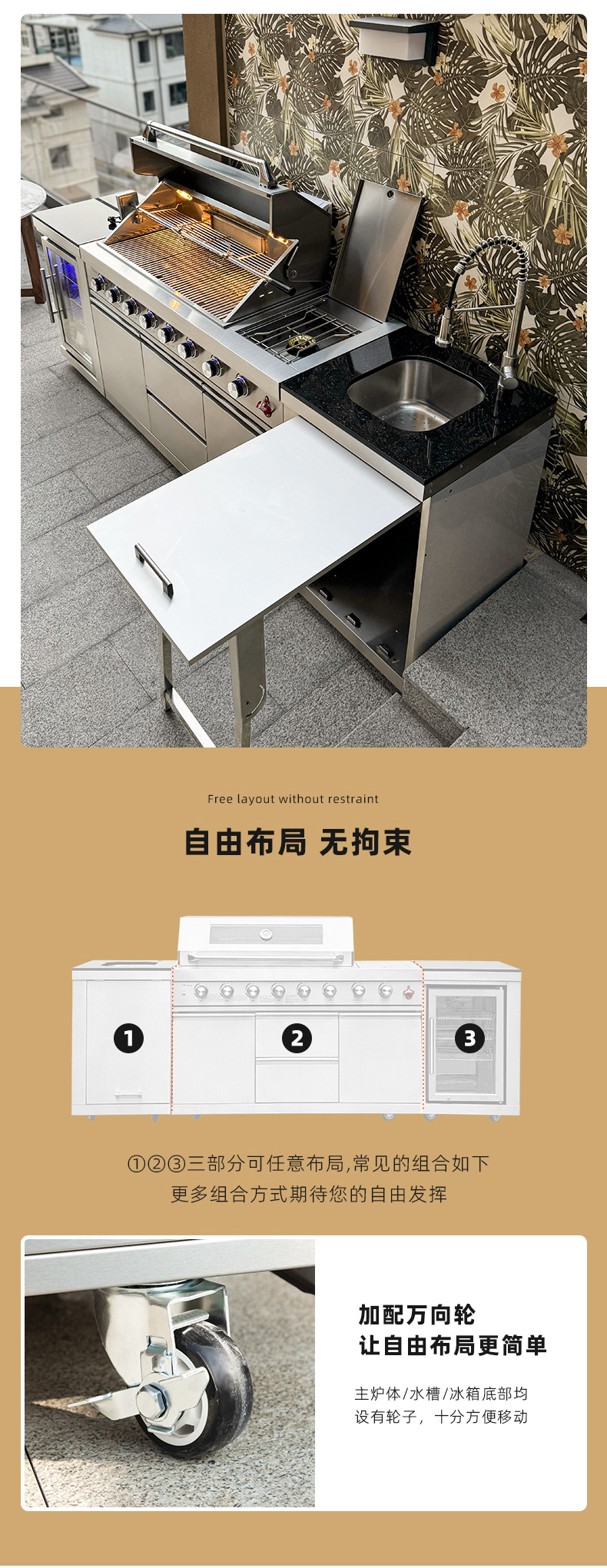 Jardín al aire libre patio horno de barbacoa de gas de doble propósito villa BBQ rack horno integral gabinete de cocción