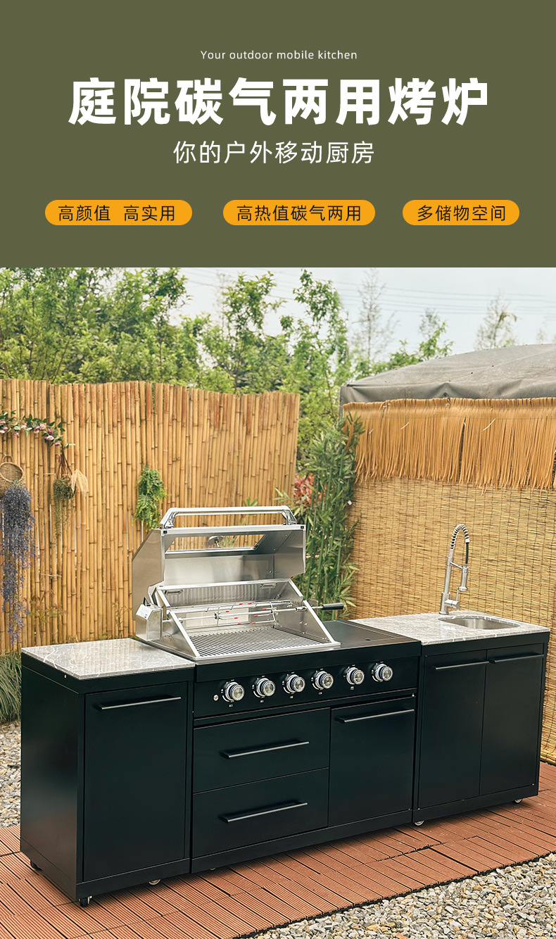 Gabinete al aire libre carbón de gas horno de parrilla de doble propósito acero inoxidable 304 horno al aire libre exportación transfronteriza horno de espesamiento