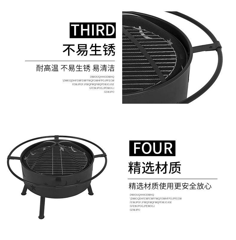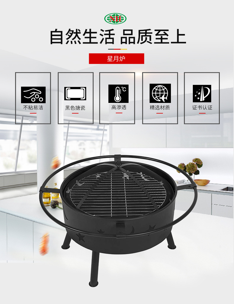 Fábrica se especializa en la producción de calentador negro antiadherente pintura estrella redonda Luna estufa brasero hogar al aire libre barbacoa de carbón estufa lote