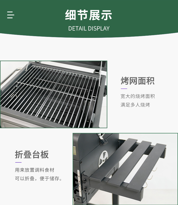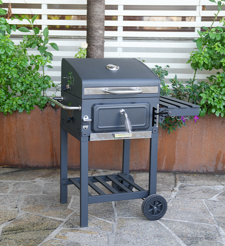 Exportación europea y americana pequeña parrilla de patio cuadrada horno de camping al aire libre horno de barbacoa multifuncional elevación de carbón barbacoa
