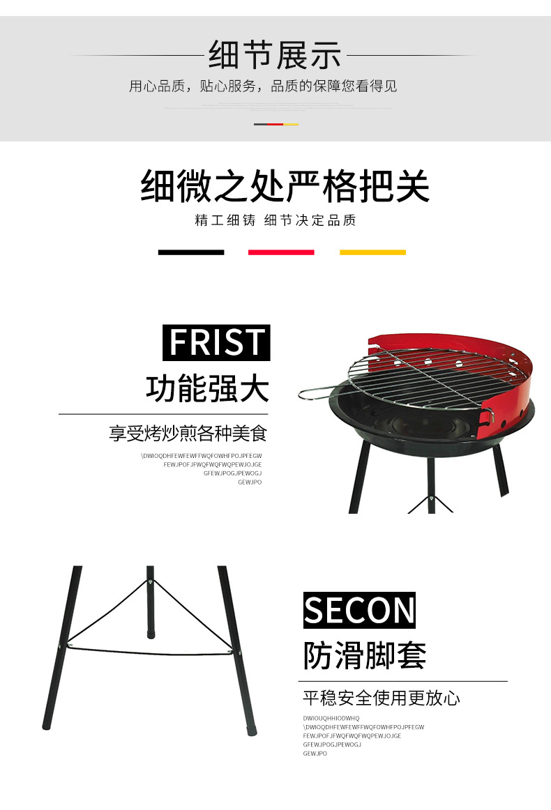 14 pulgadas hogar barbacoa de carbón parrilla engrosada portátil simple barbacoa parrilla redonda al aire libre trípode barbacoa parrilla