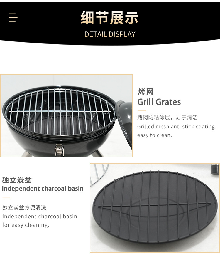 Comercio exterior al por mayor esmalte brillante profundo de alta calidad 14 pulgadas horno de manzana al aire libre horno de barbacoa esférico portátil horno de barbacoa redondo