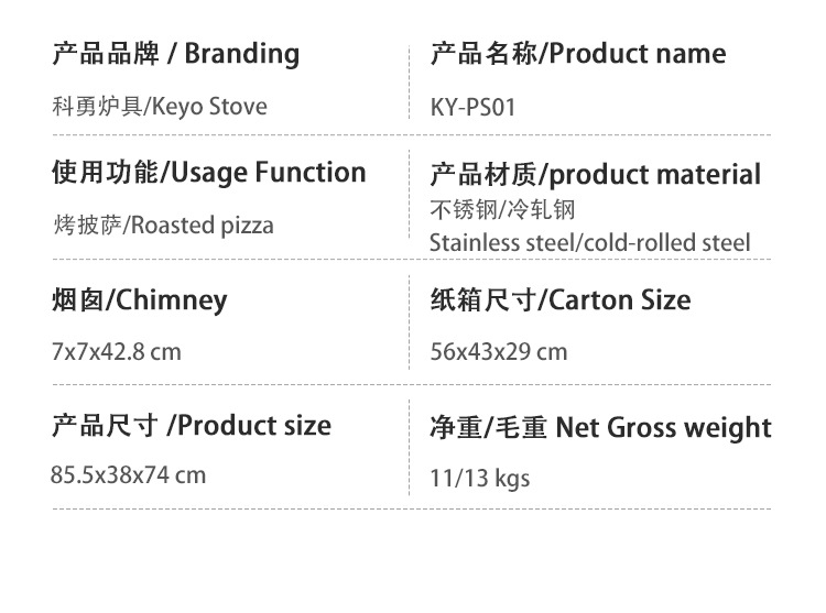 | Especificaciones de la parrilla / plato | Estufa de pizza de gas de partículas [13 pulgadas] |