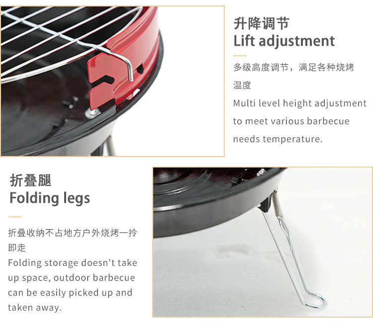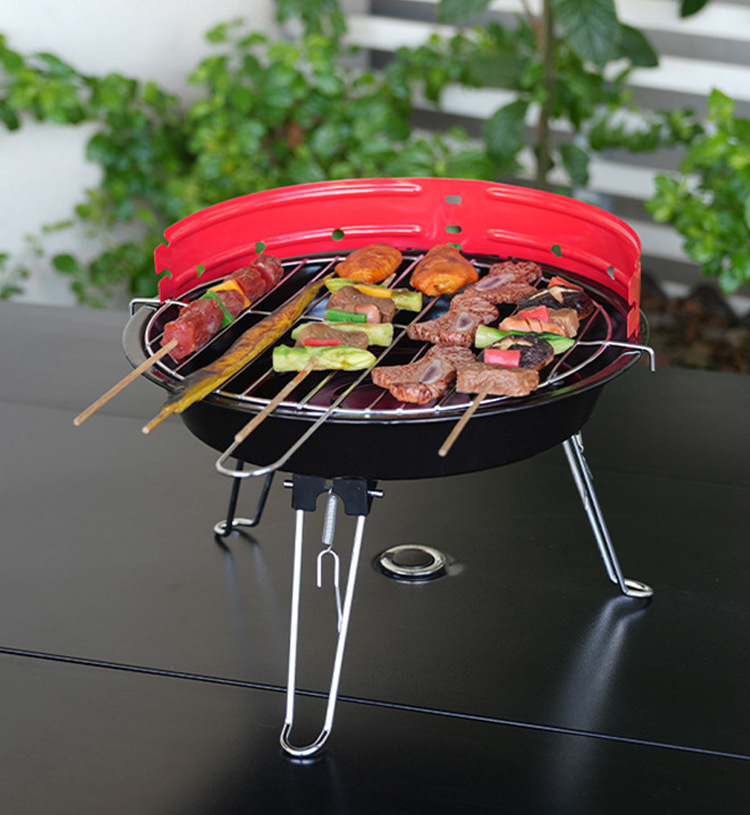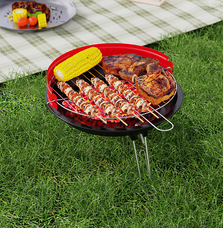Grilla de barbacoa plegable portátil sin instalación Grilla de barbacoa al aire libre Grilla ajustable Grilla de carbón de barbacoa de trípode redondo