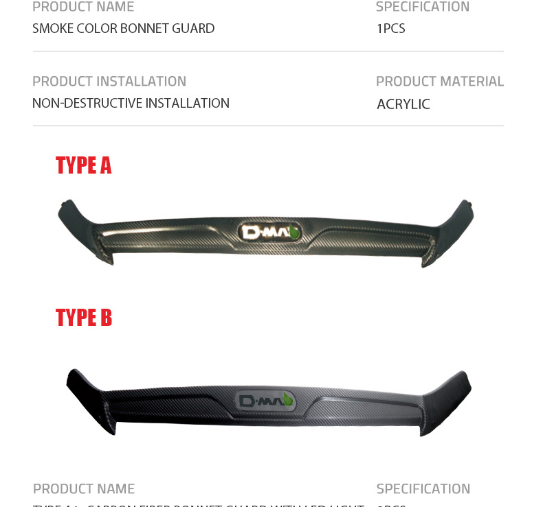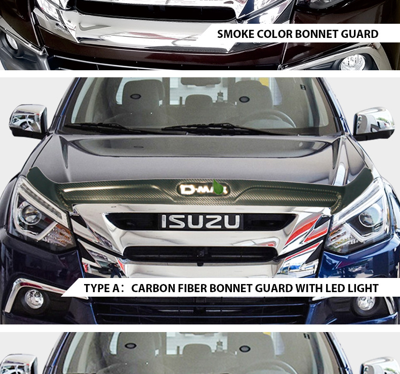 | Especificaciones | Dmax 2011-2018 especial arena y piedra bloqueador brillante negro 1 pieza,Dmax 2011-2018 especial de arena y grava con patrón de fibra de carbono con lámpara 1 pieza |