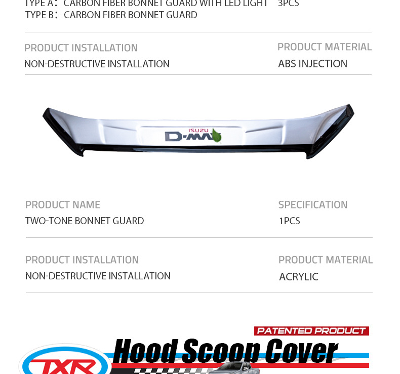 TXR es adecuado para Wuling, accesorios especiales para la modificación del bloque de arena y grava del automóvil isuzu dmax Bonnet Guard