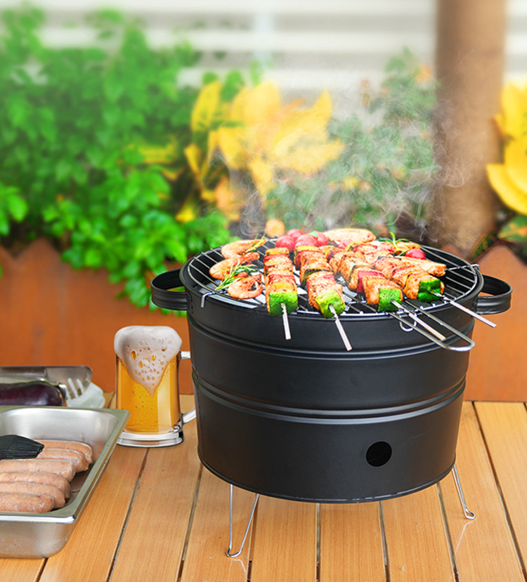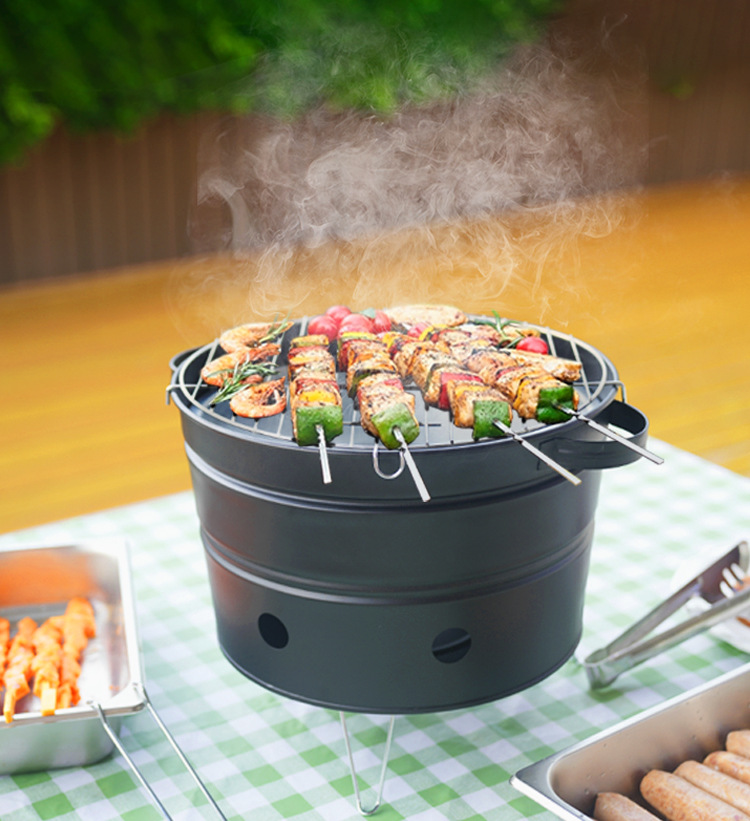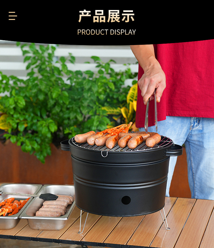 Piernas plegables portátiles gran cubo de agua horno de barbacoa redondo pequeño hogar camping cubo de agua parrilla de barbacoa horno de camping