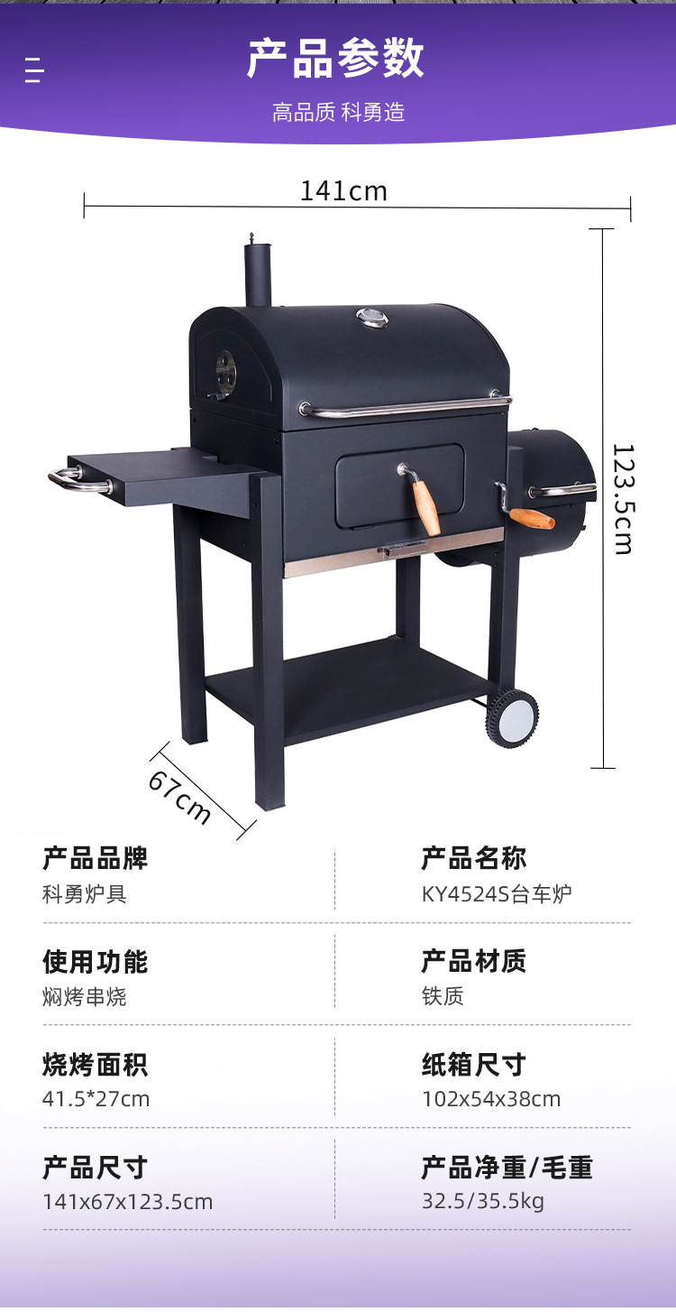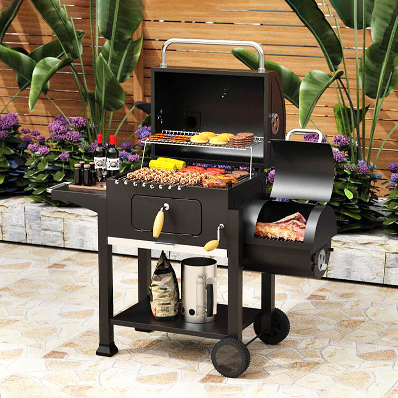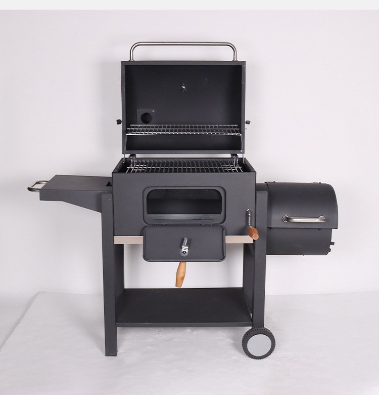 American doble barril madre horno de barbacoa de carbón horno de parrilla de parrilla de parrilla de carbón multifuncional grande horno de parrilla de parrilla de carbón