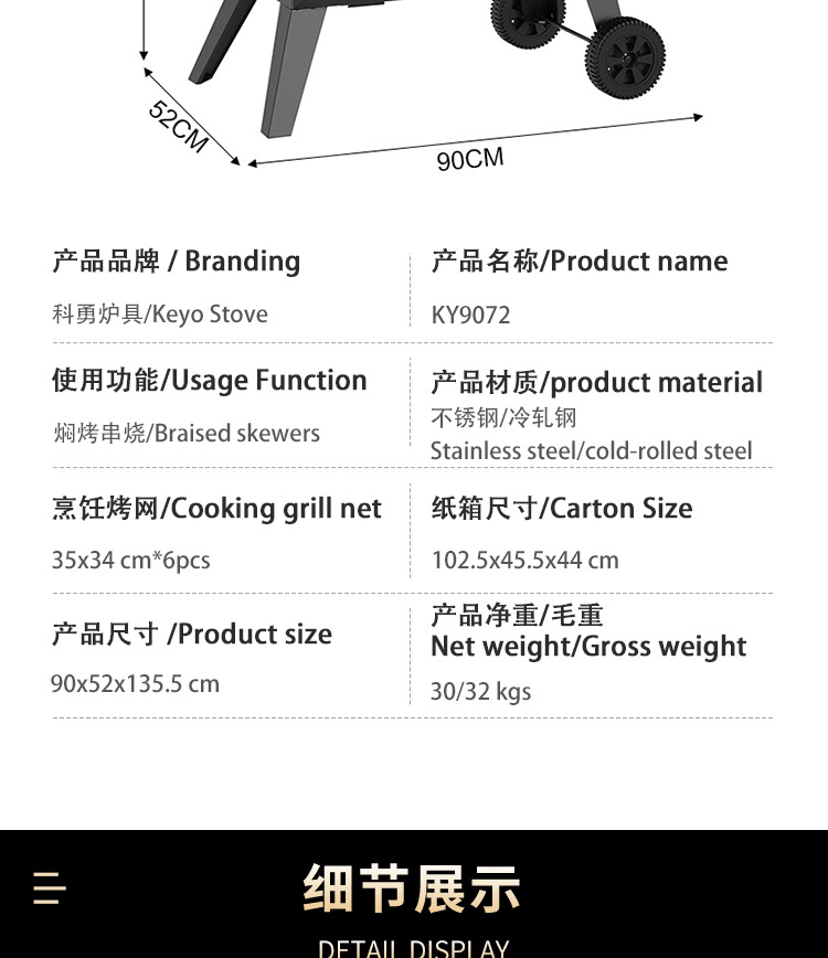 Horno de ahumado estadounidense transfronterizo horno de ahumado comercial horno de ahumado vertical horno de ahumado de carbón horno de ahumado de Texas rack