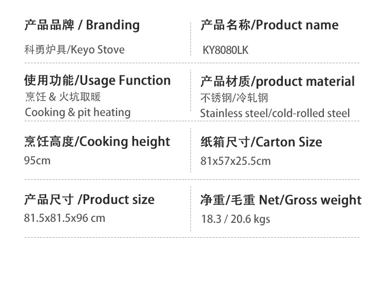 | Especificaciones de la parrilla / plato | Calentador de barbacoa de acero resistente a la intemperie |